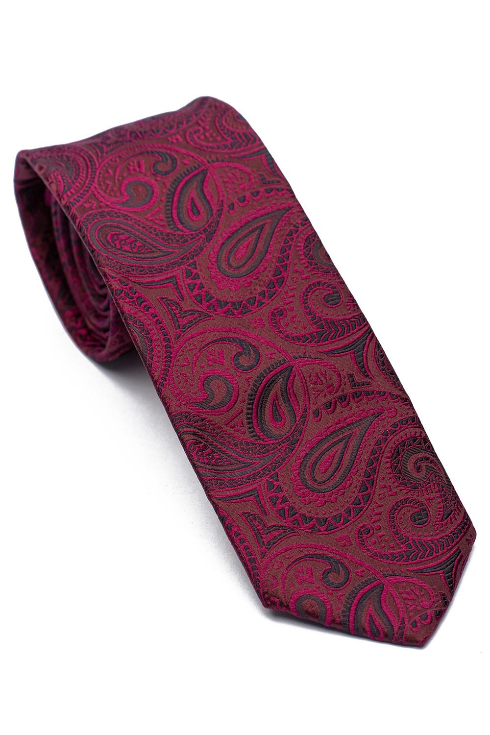 Cravata matase tesuta grena print floral