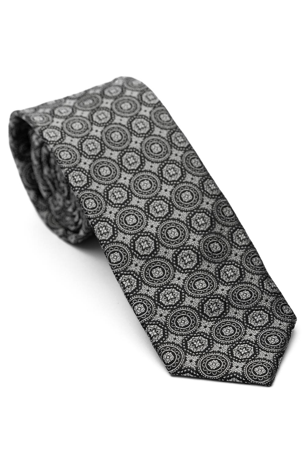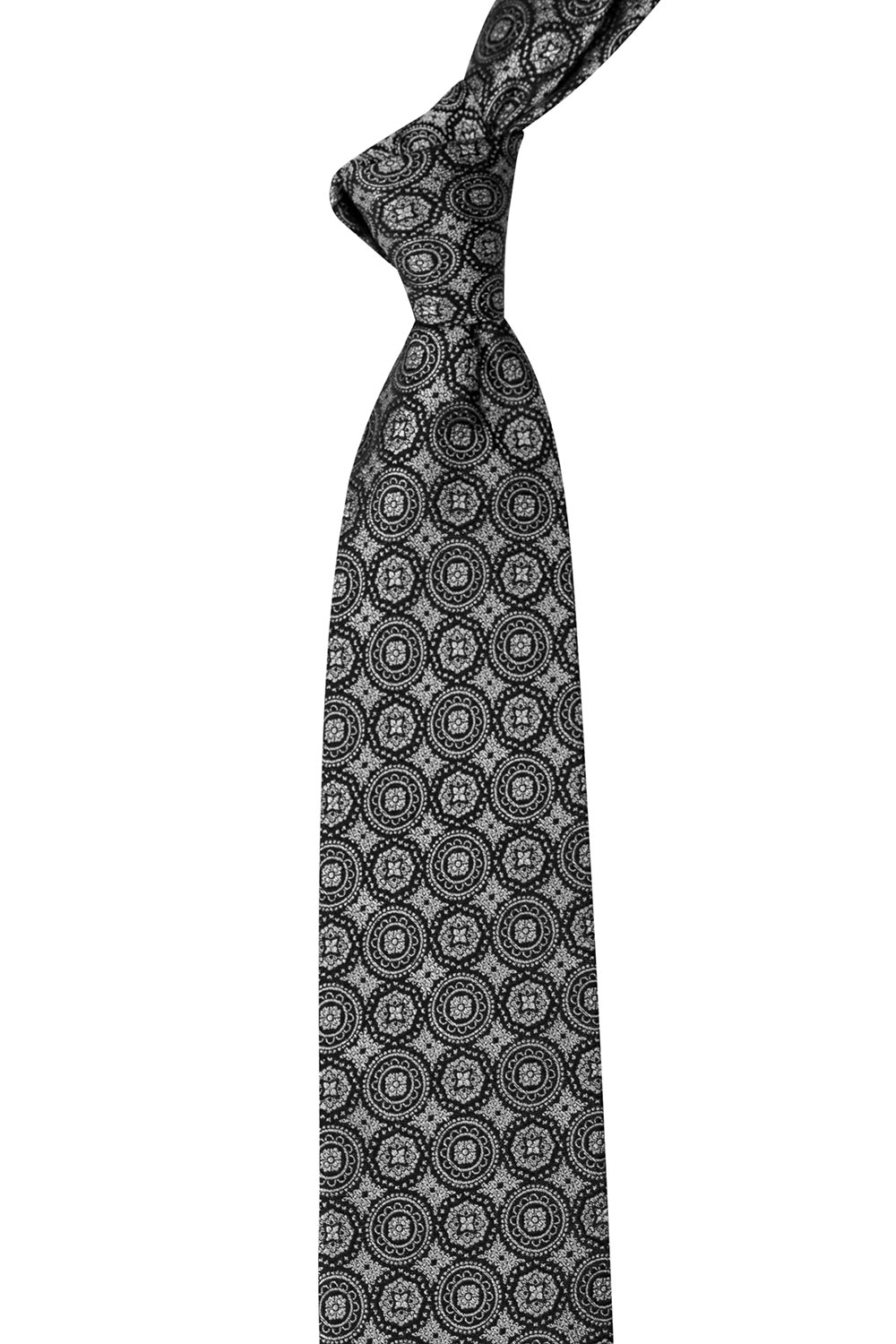 Cravata matase tesuta negru floral 1