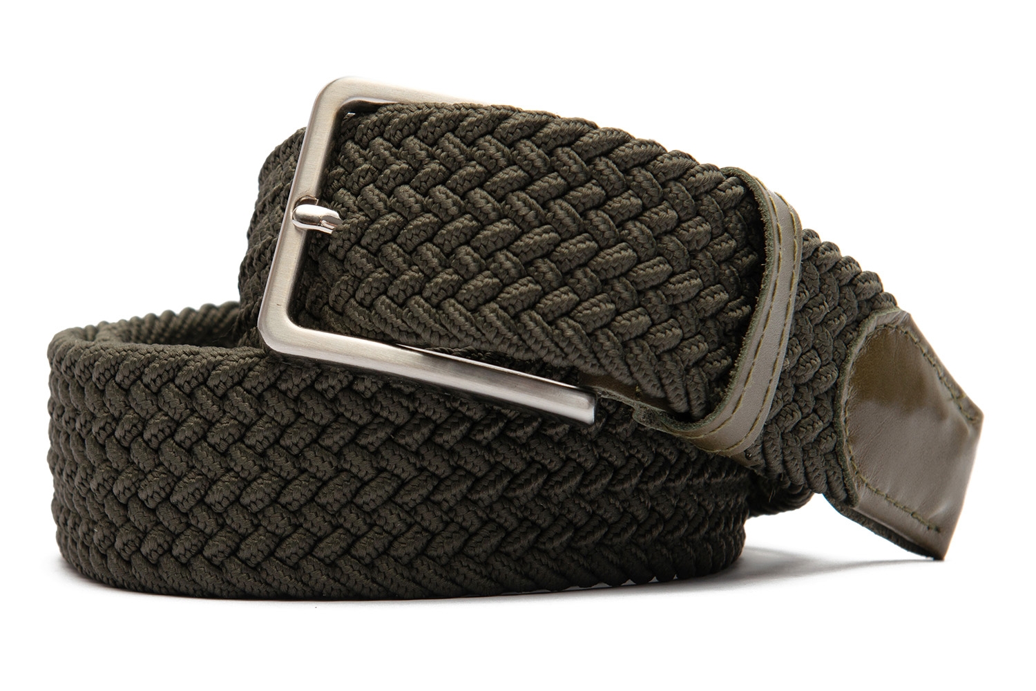 Curea kaki textil elastic si piele naturala 0