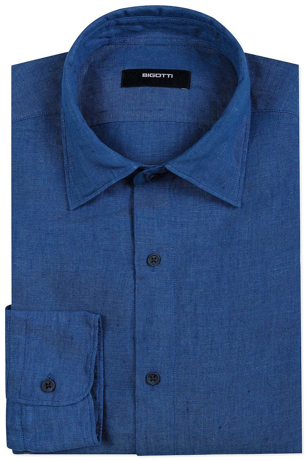 Camasa din in shaped albastra uni 1