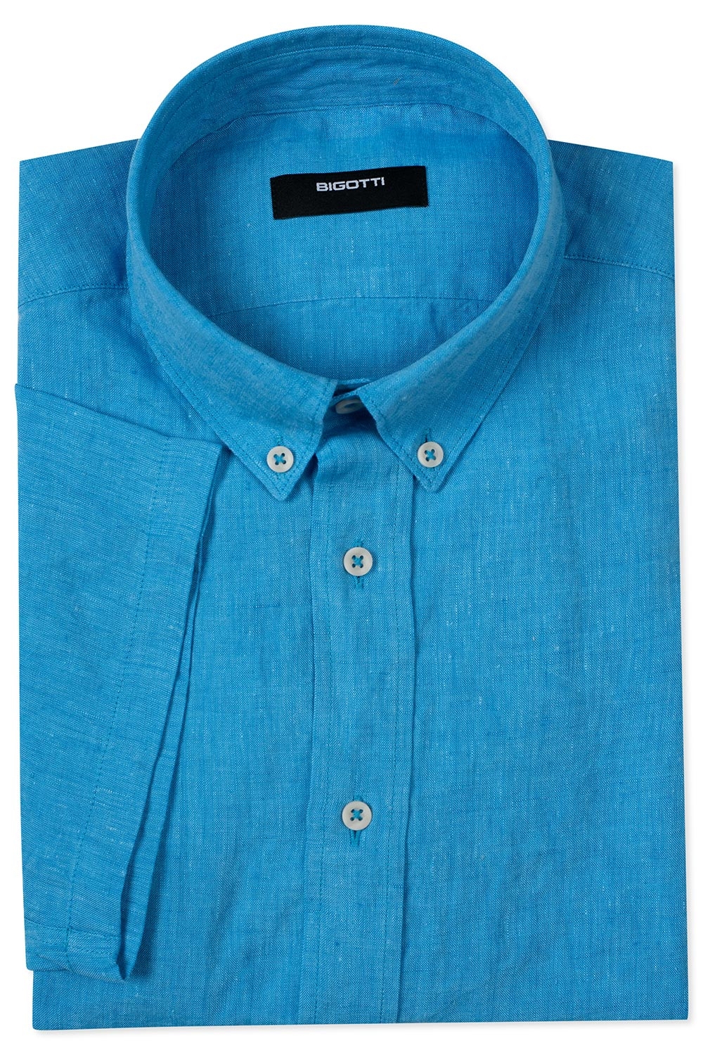 Camasa maneca scurta din in shaped bleu uni 1