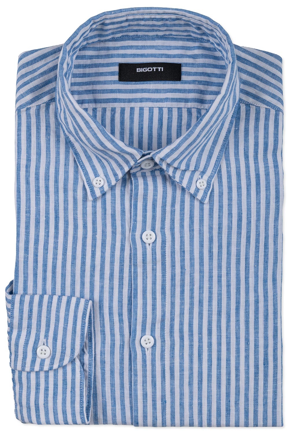 Camasa din in slim albastra in dungi 1