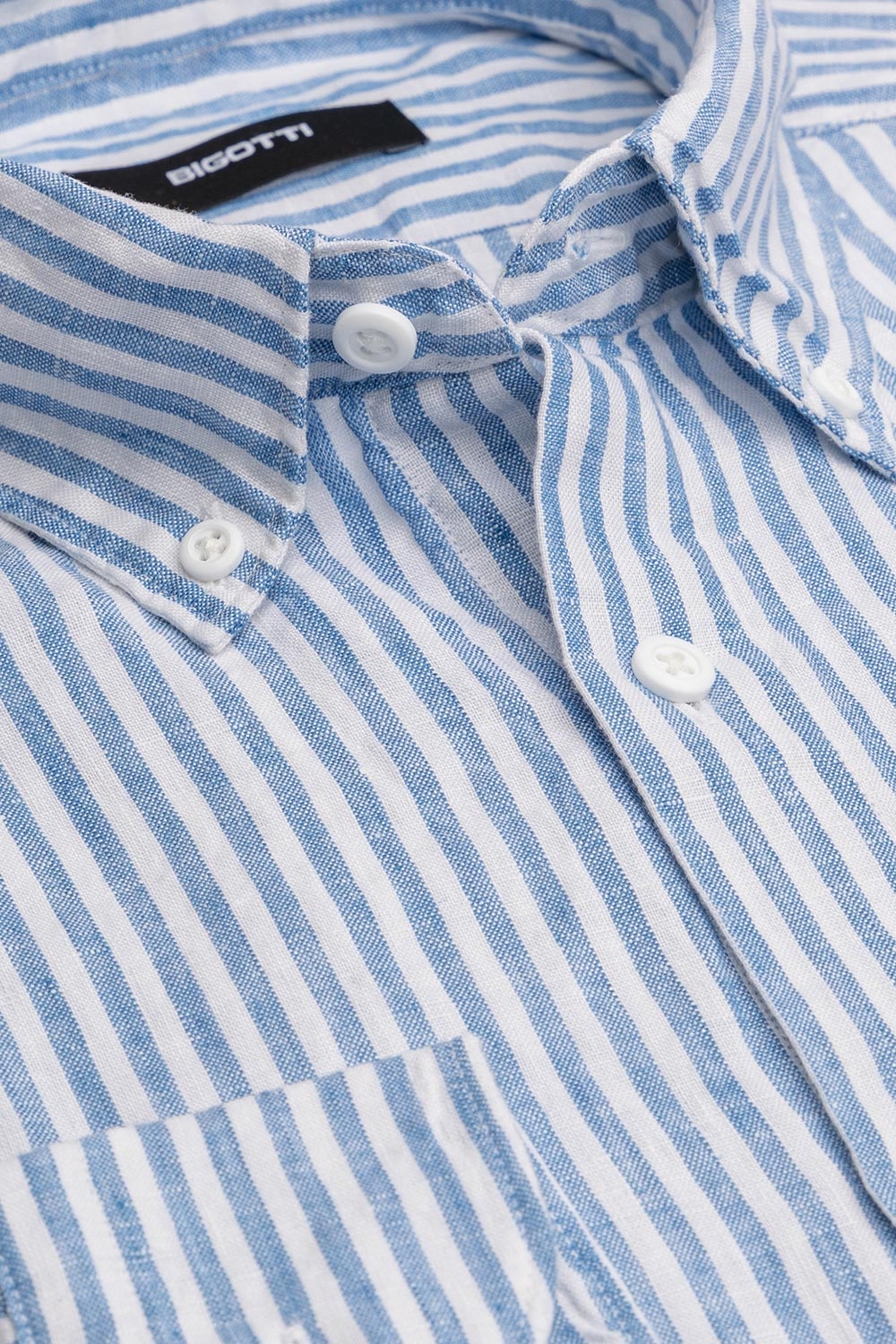 Camasa din in slim albastra in dungi 2