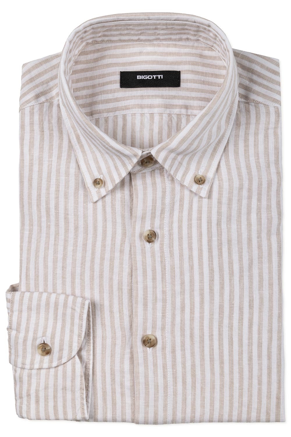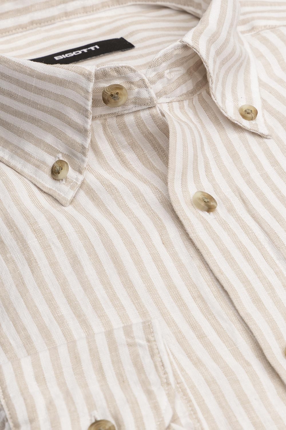 Camasa din in slim bej in dungi 1