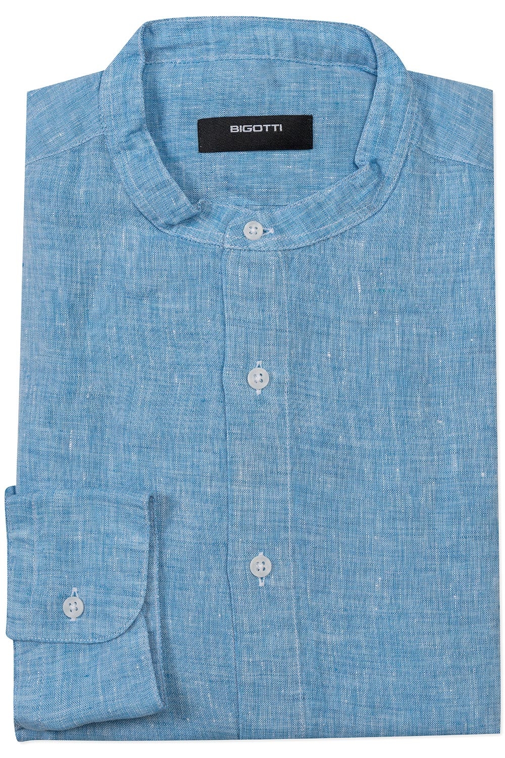 Camasa din in slim bleu guler tunica 0