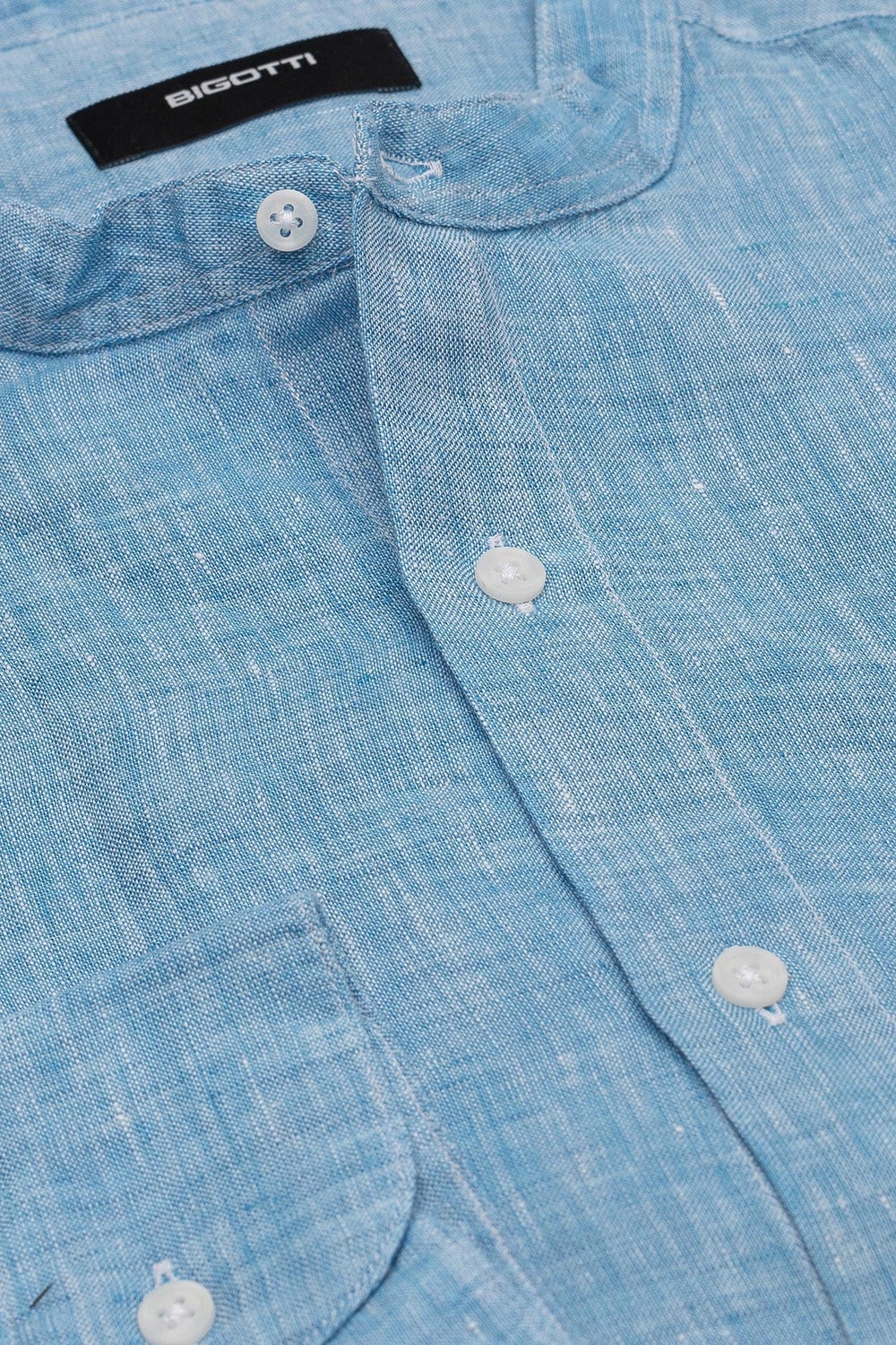 Camasa din in slim bleu guler tunica 1