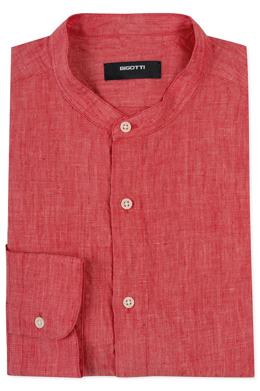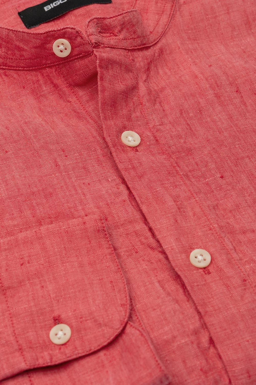 Camasa din in slim rosie uni guler tunica 0