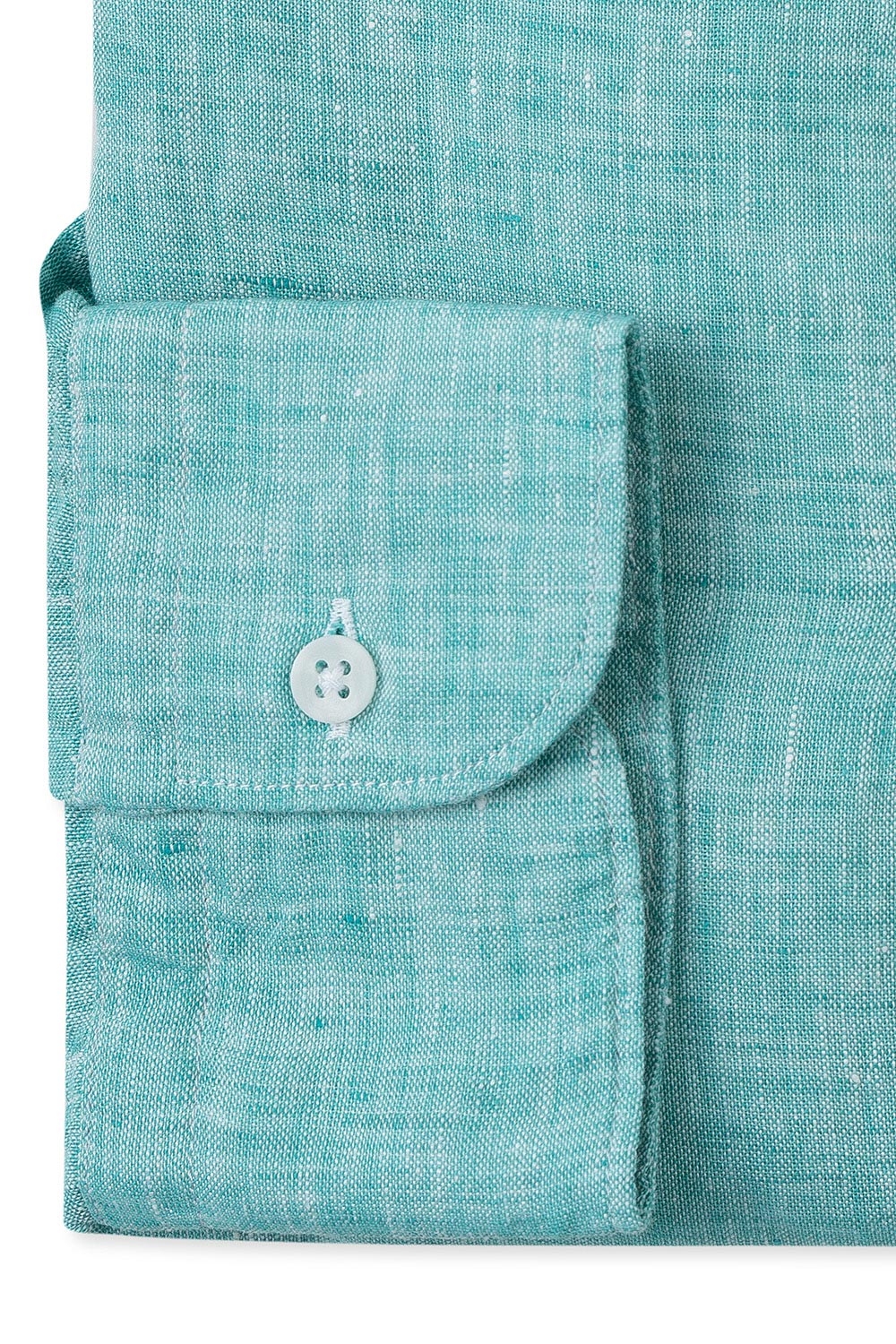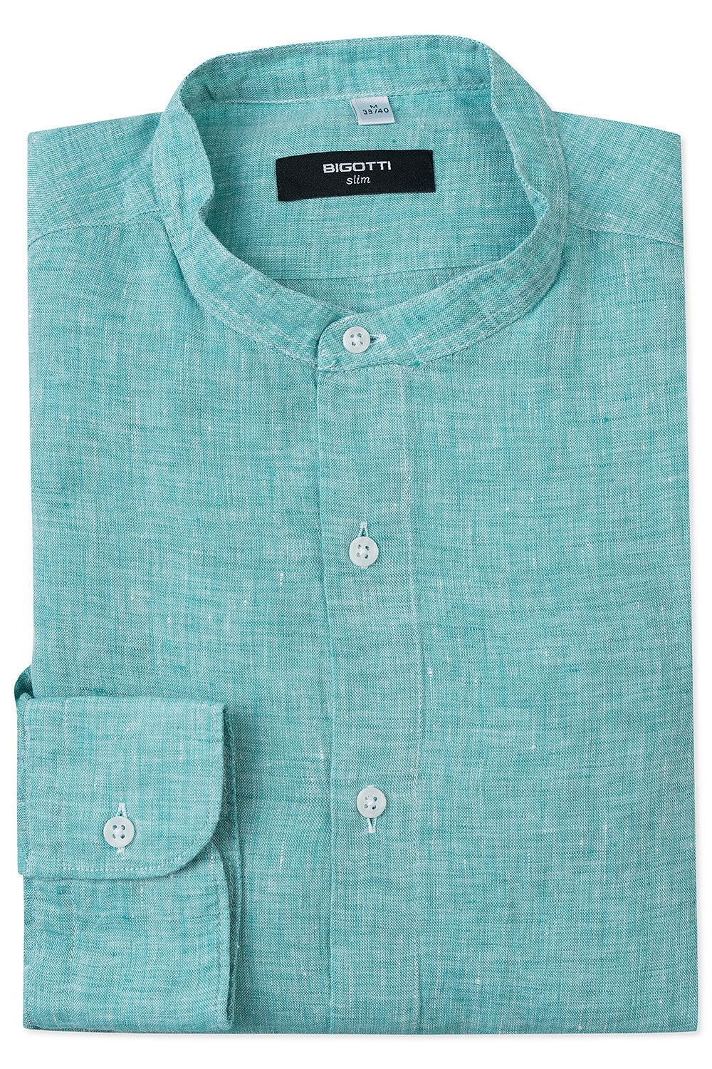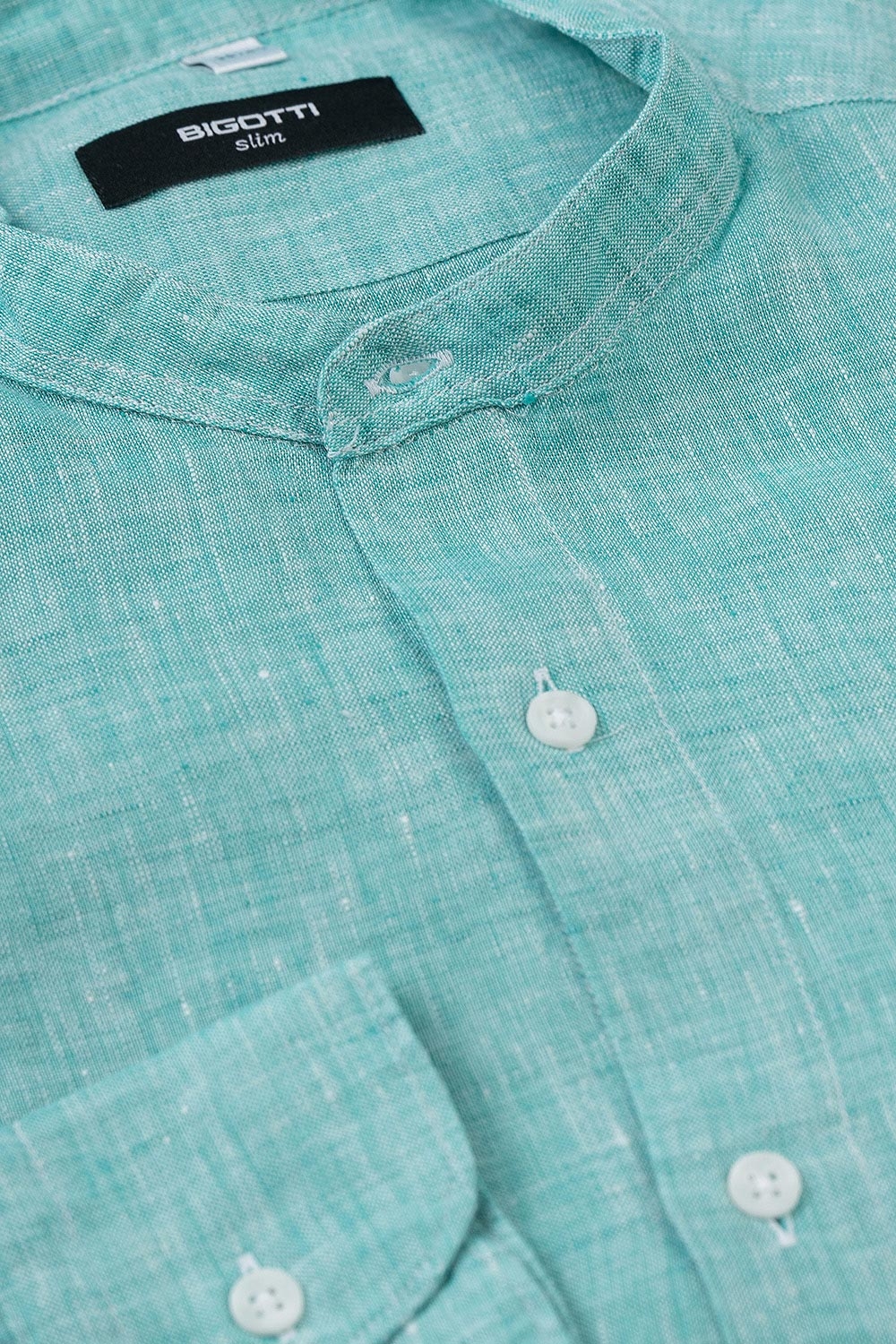 Camasa din in slim verde guler tunica