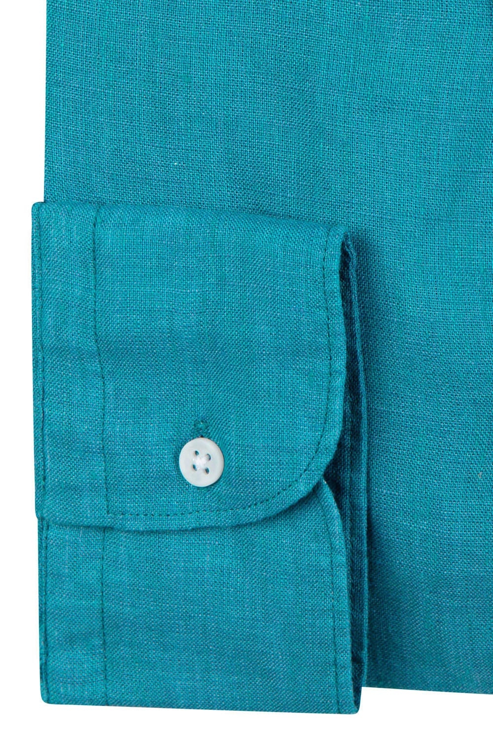 Camasa din in superslim albastra uni 0