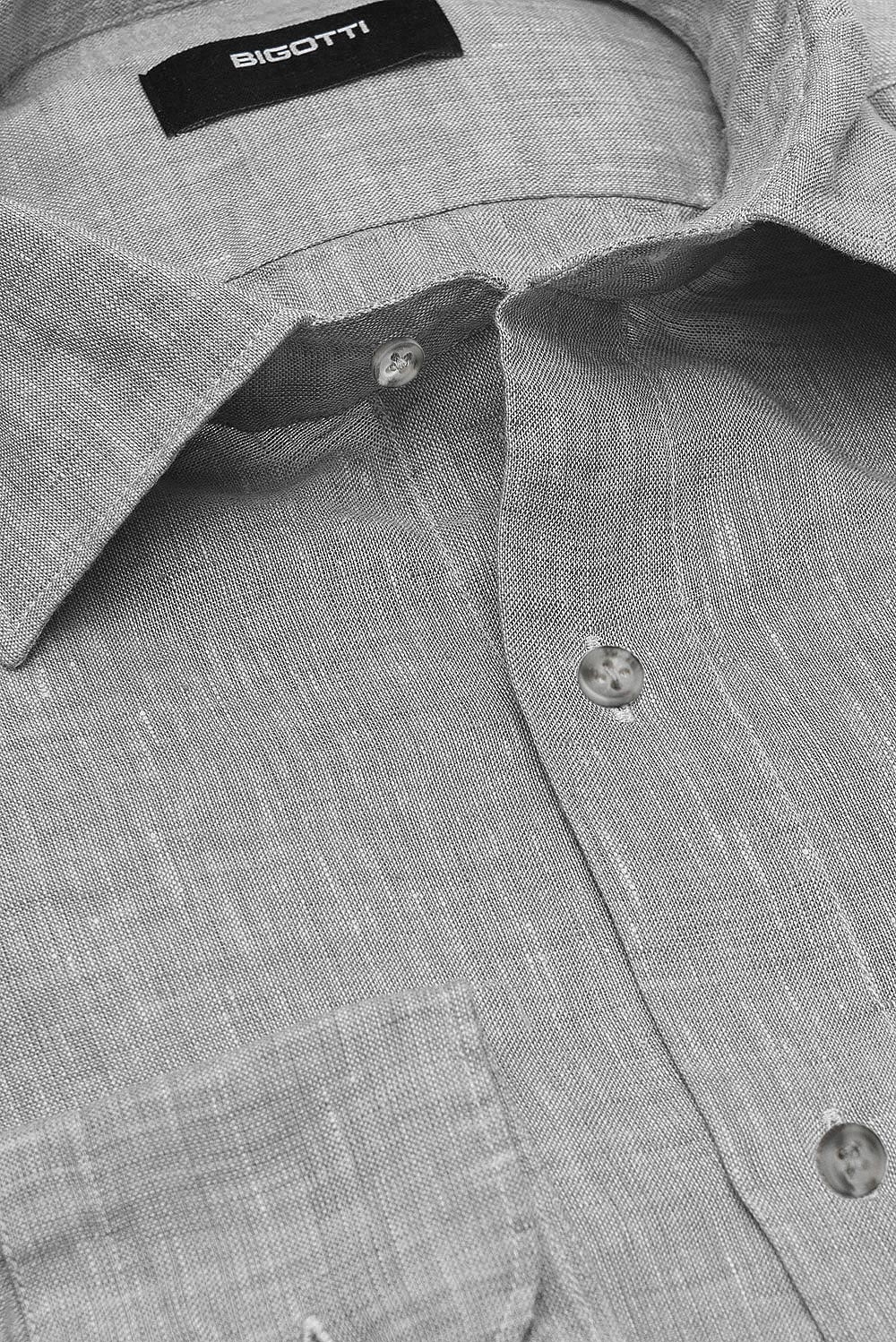 Camasa din in superslim gri uni 1