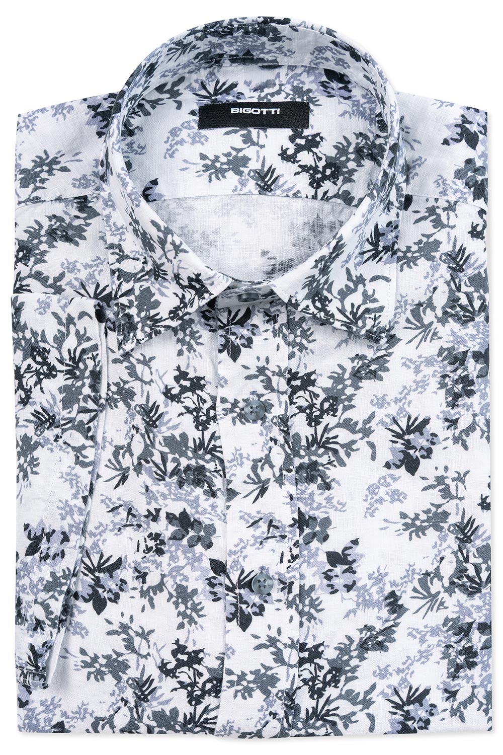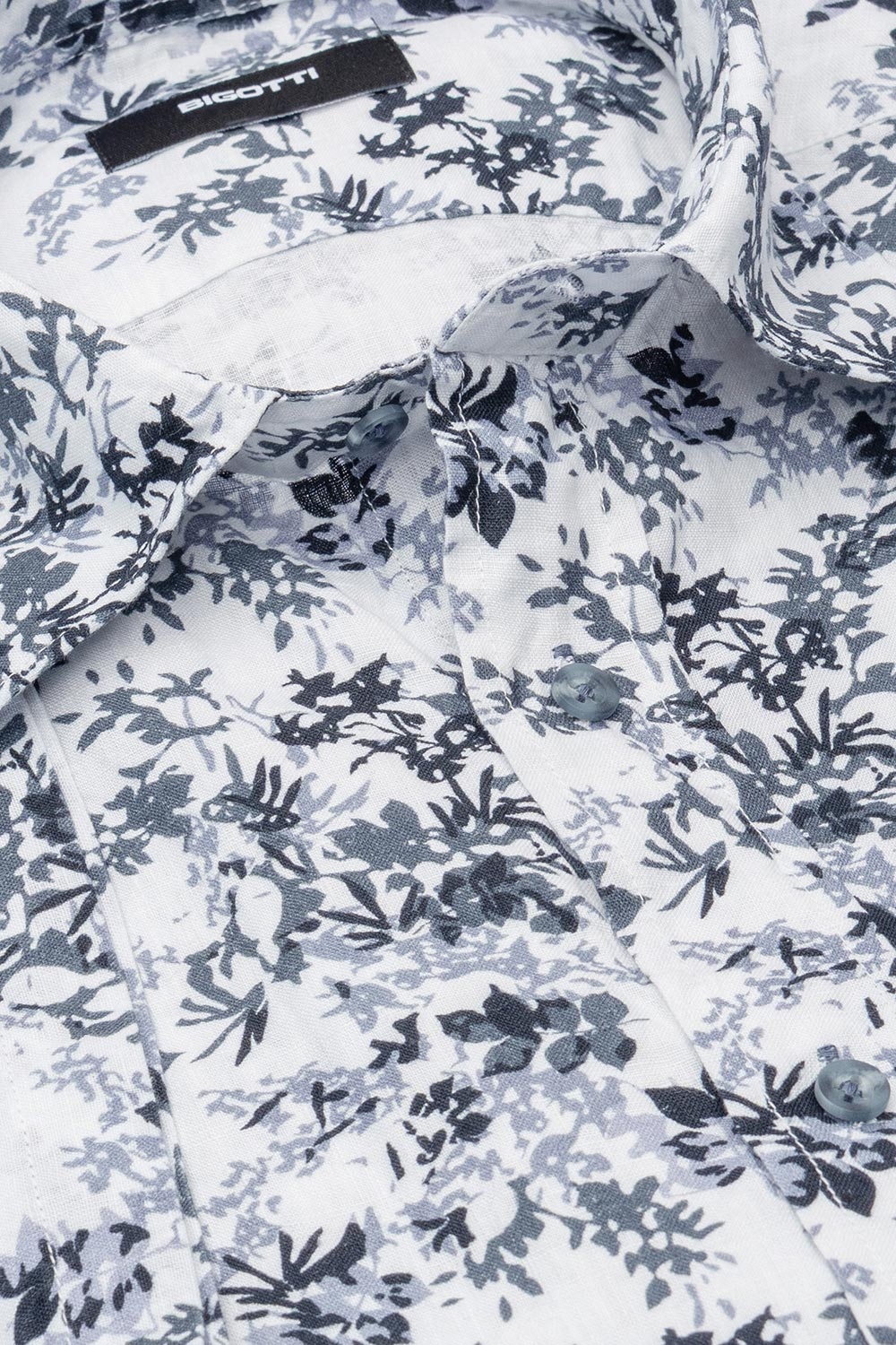 Camasa maneca scurta din in slim alba print floral