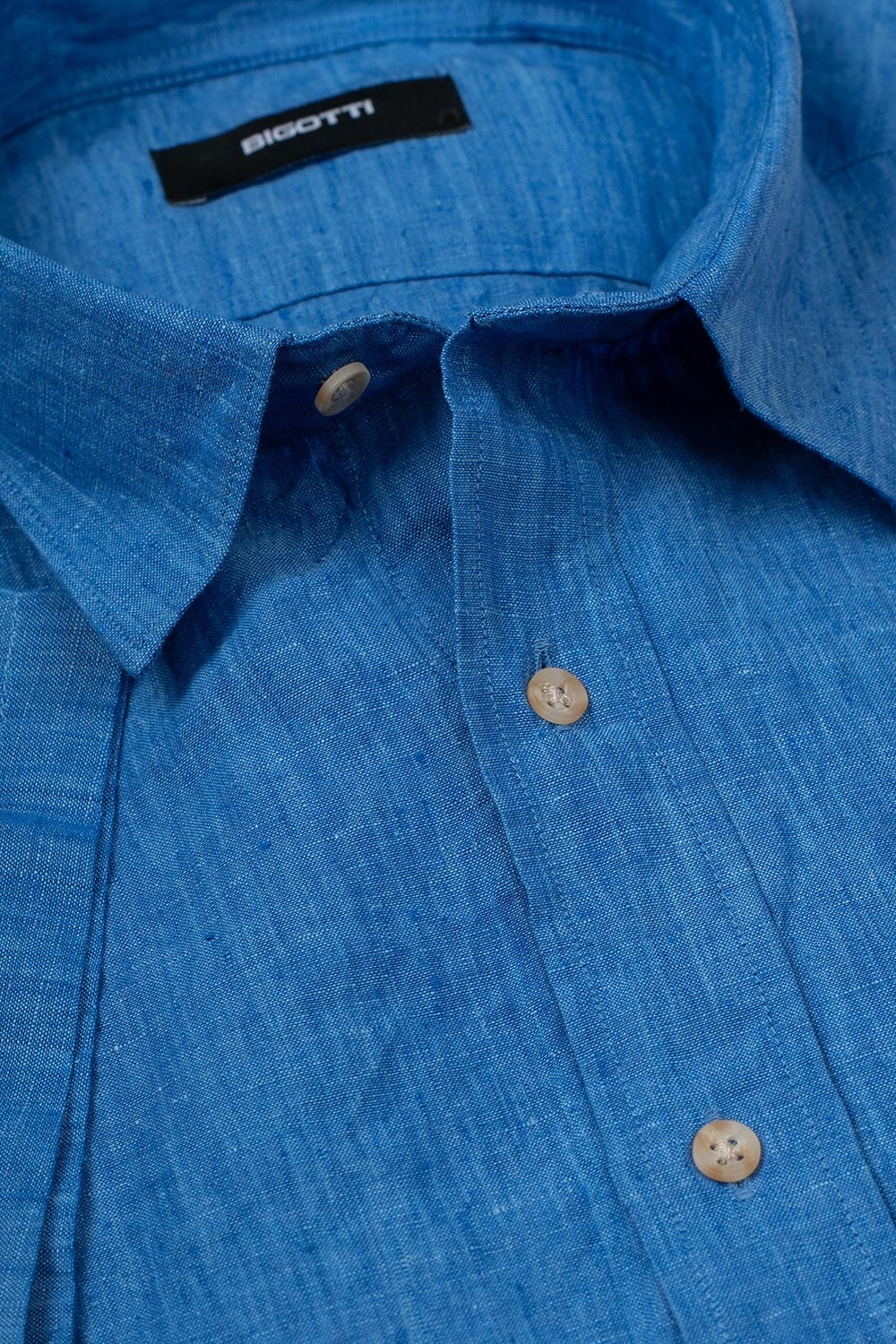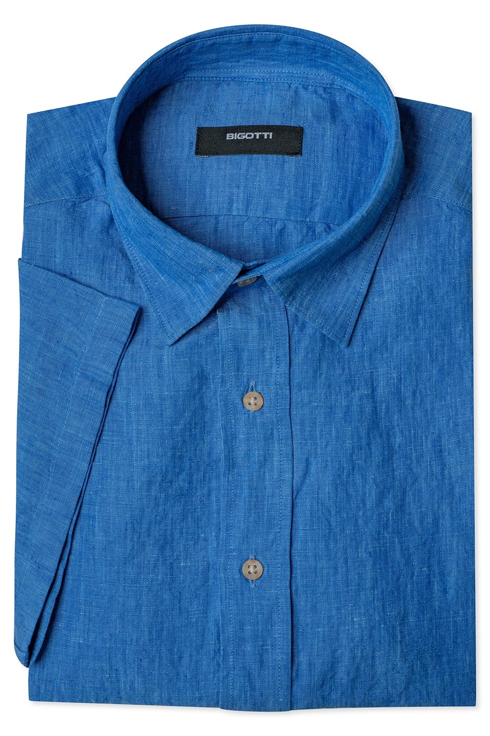 Camasa maneca scurta din in slim albastra uni 1