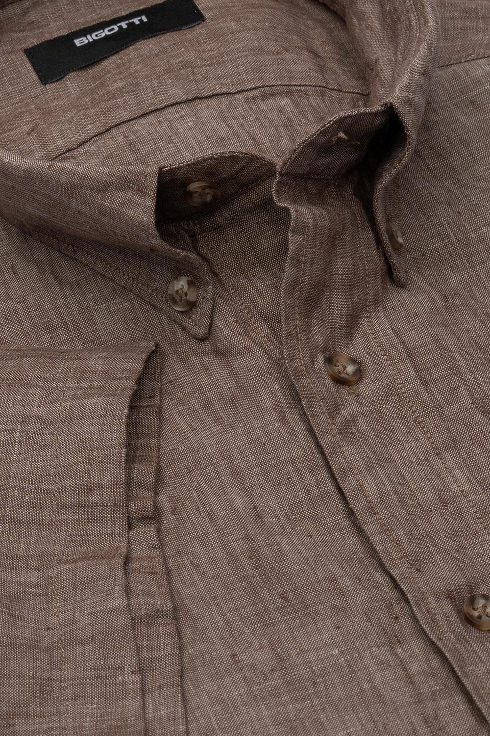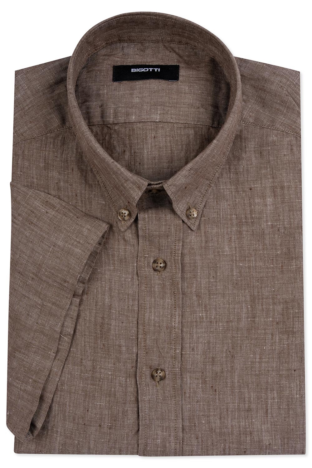 Camasa maneca scurta din in slim maro uni 2