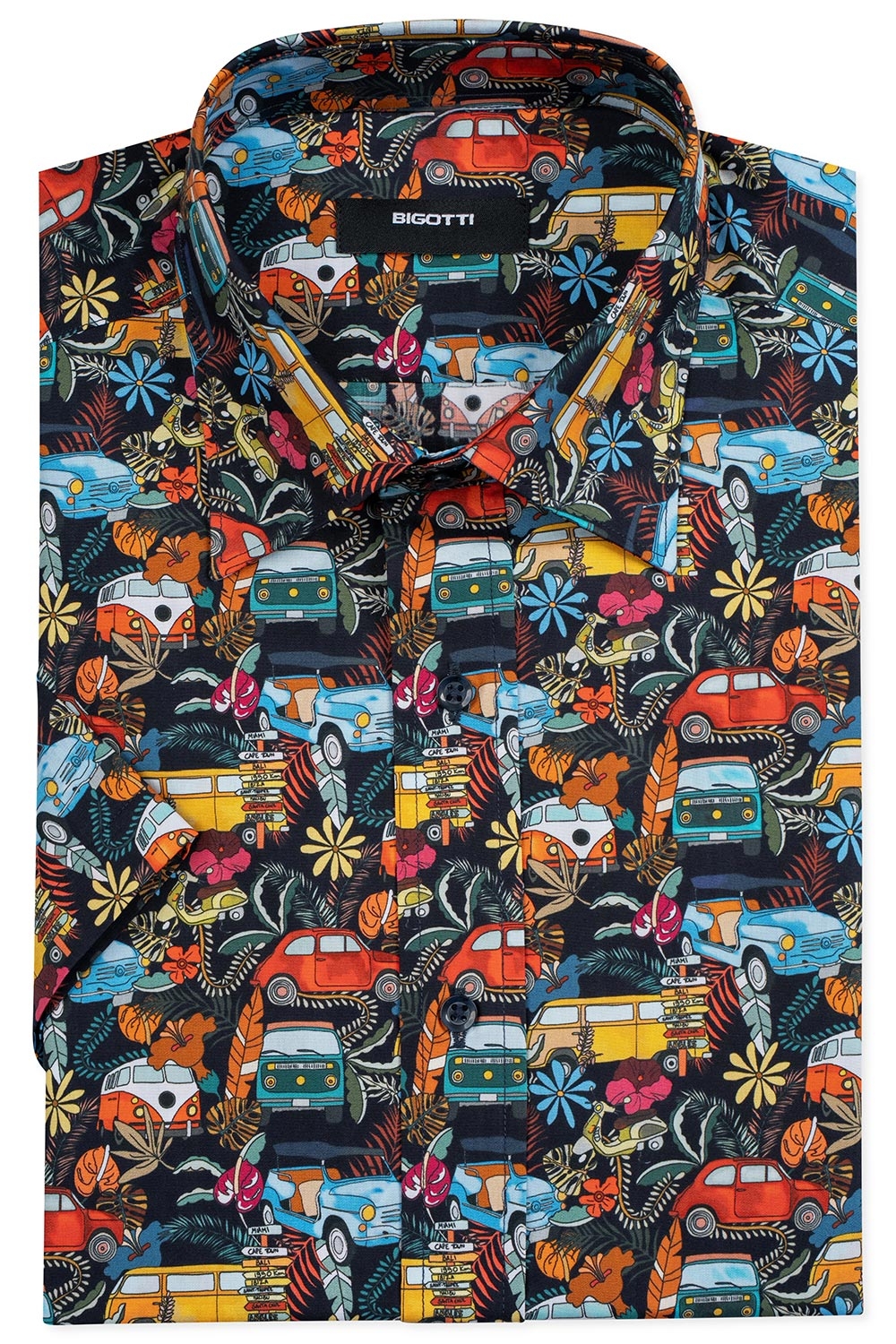 Camasa maneca scurta slim bleumarin print 1