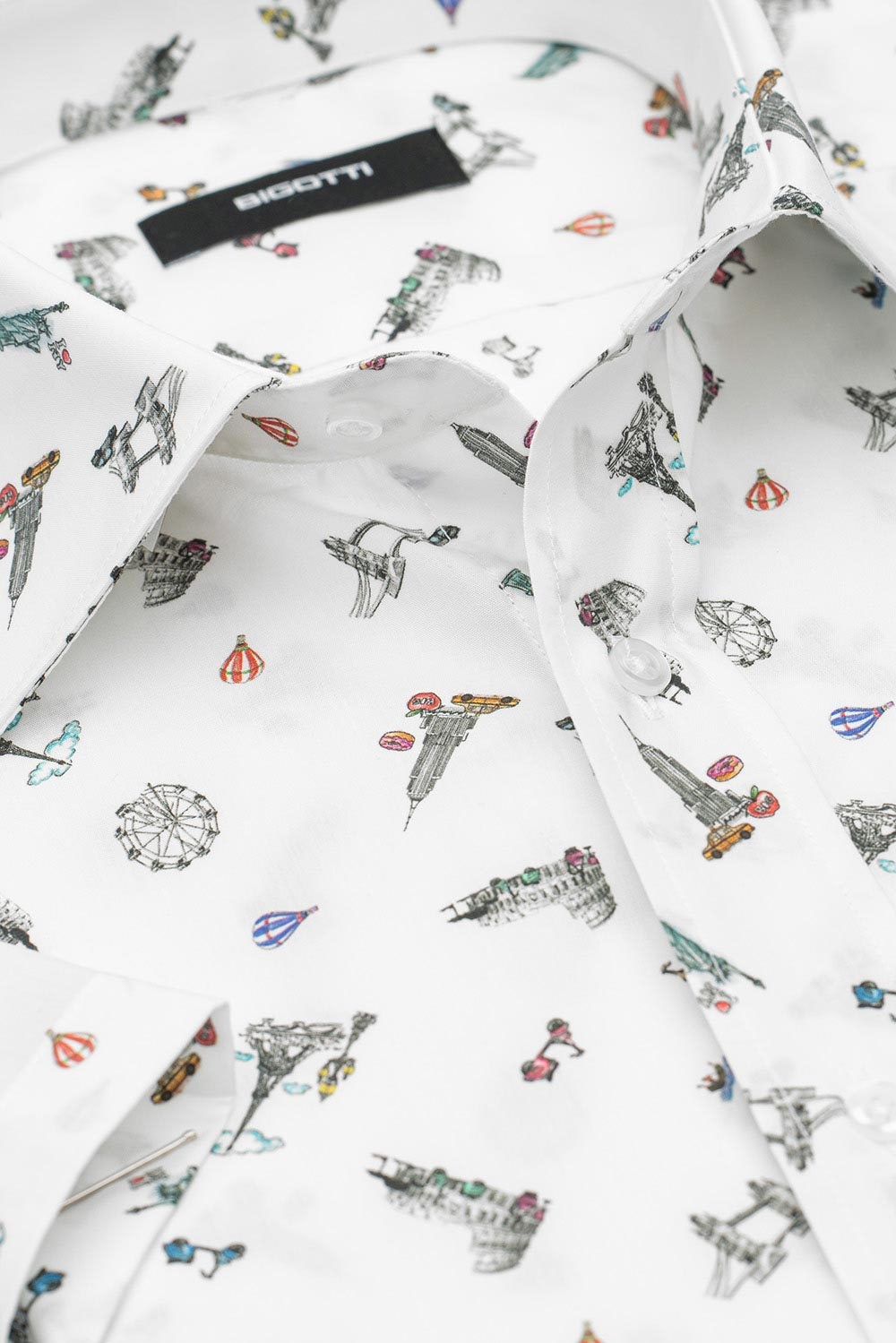 Camasa maneca scurta superslim alba print geometric