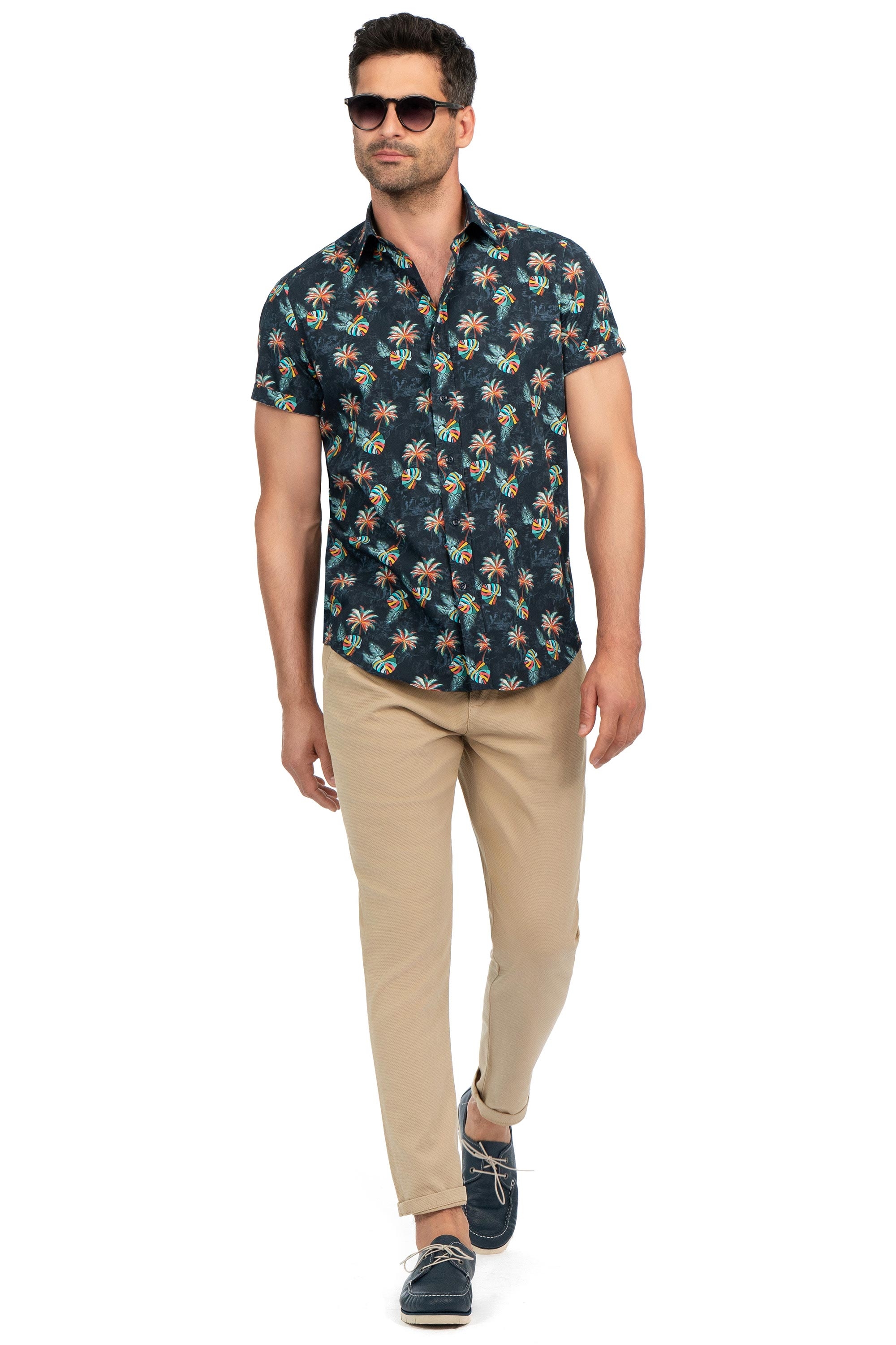 Camasa shaped maneca scurta bleumarin print geometric 1