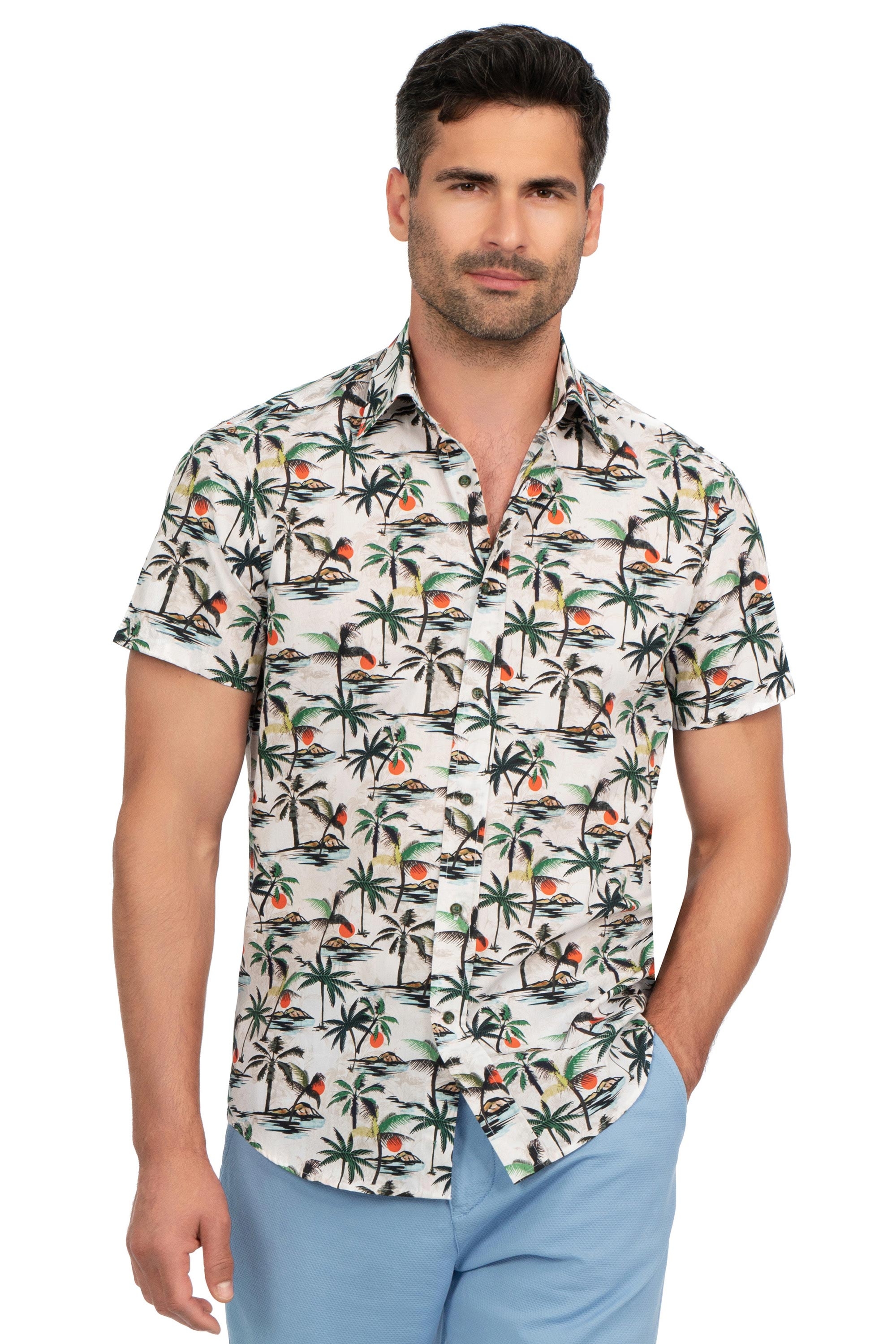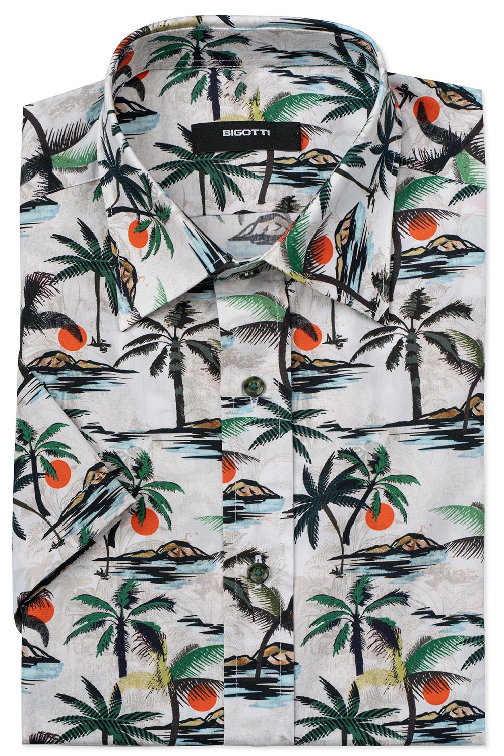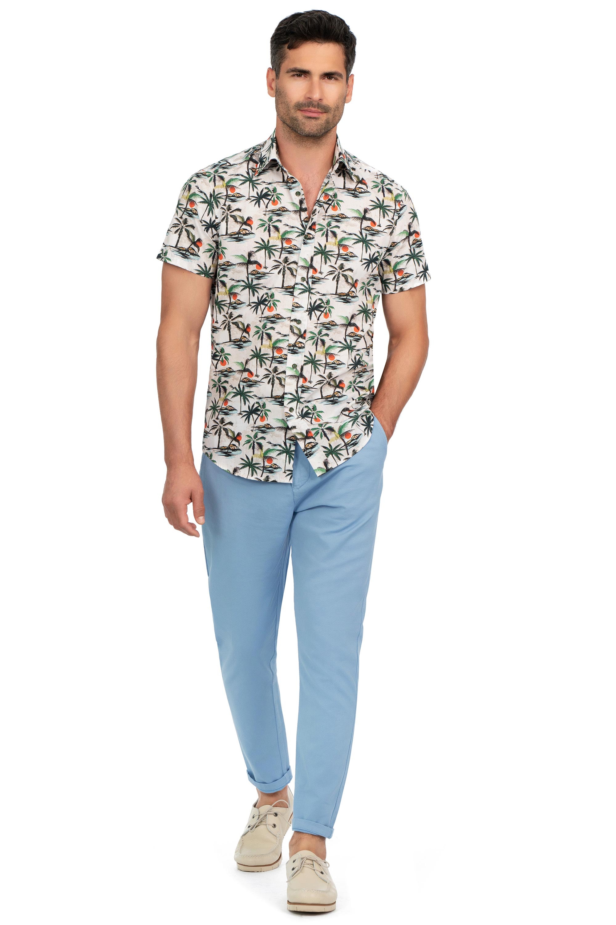 Camasa slim maneca scurta alba print geometric 1