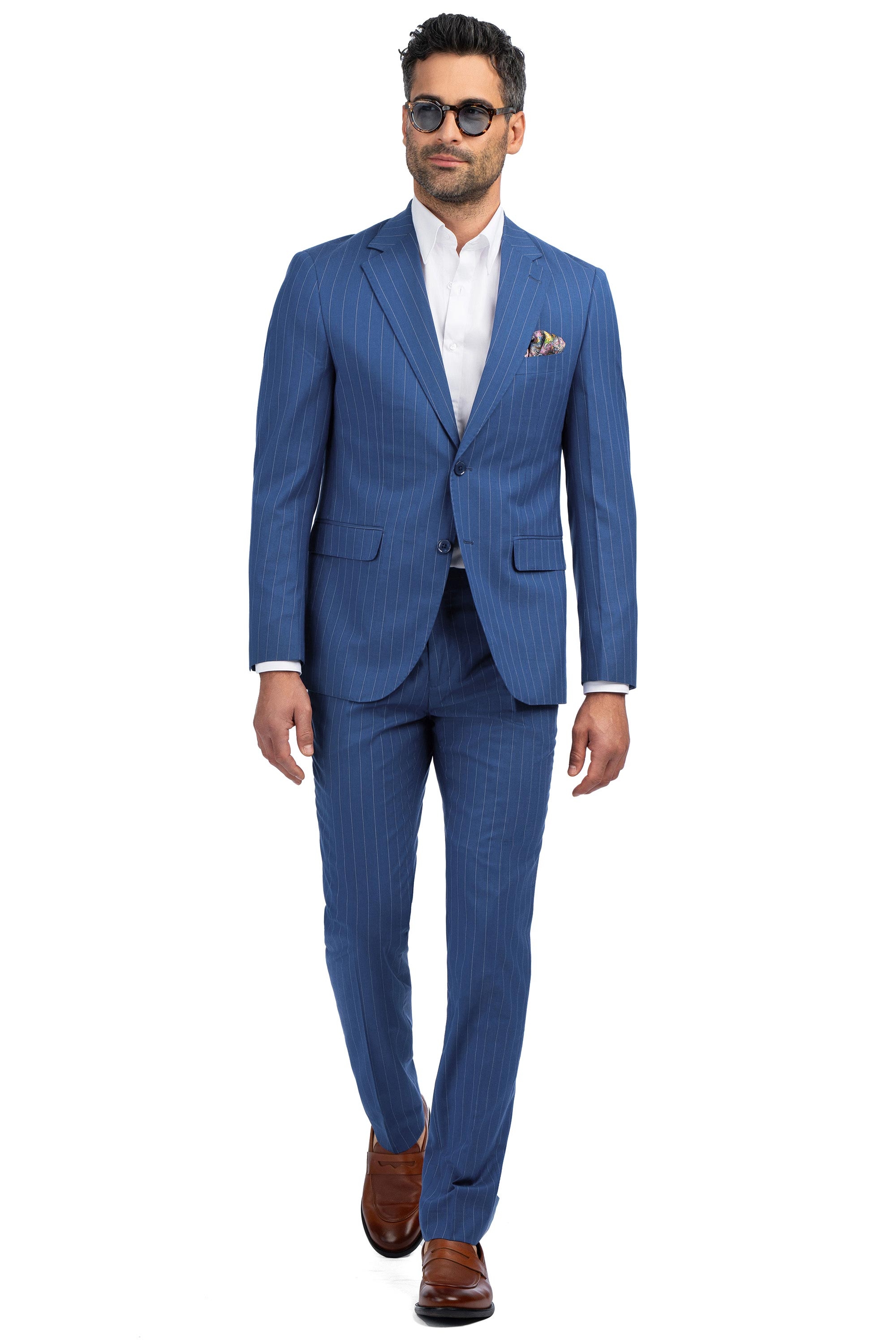 Costum slim albastru in dungi