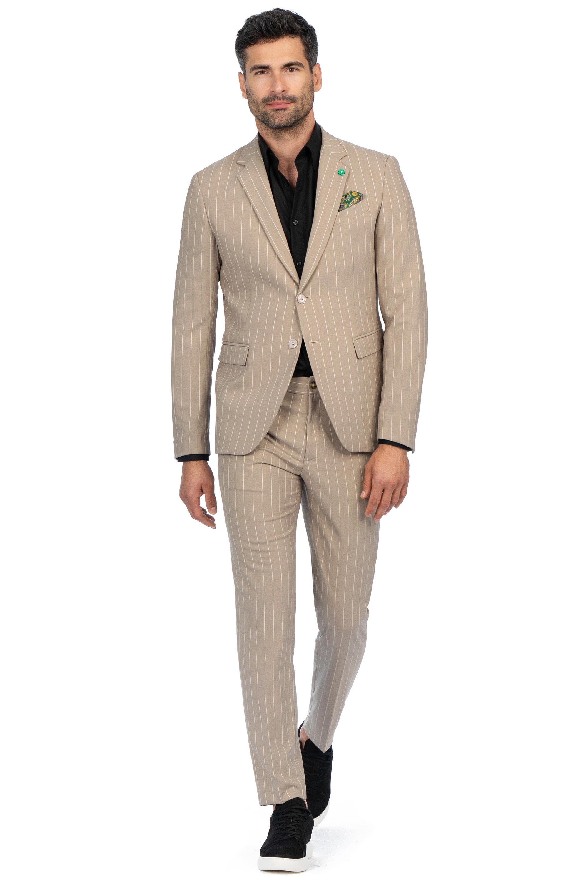 Costum slim bej in dungi 1