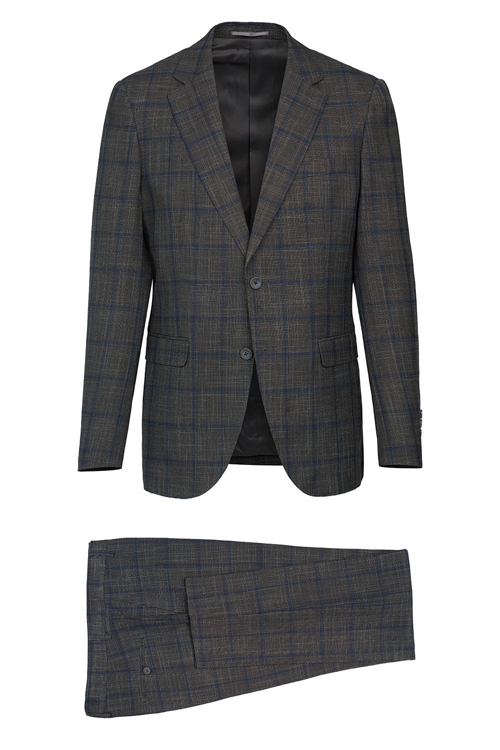 Costum slim grej in carouri 0