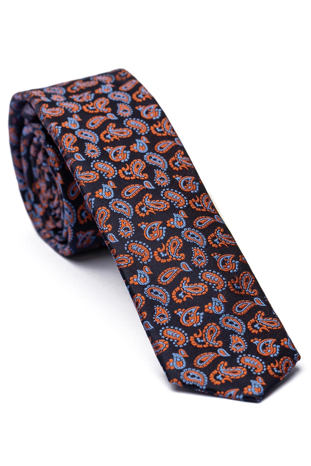 Cravata matase tesuta bleumarin print floral 1