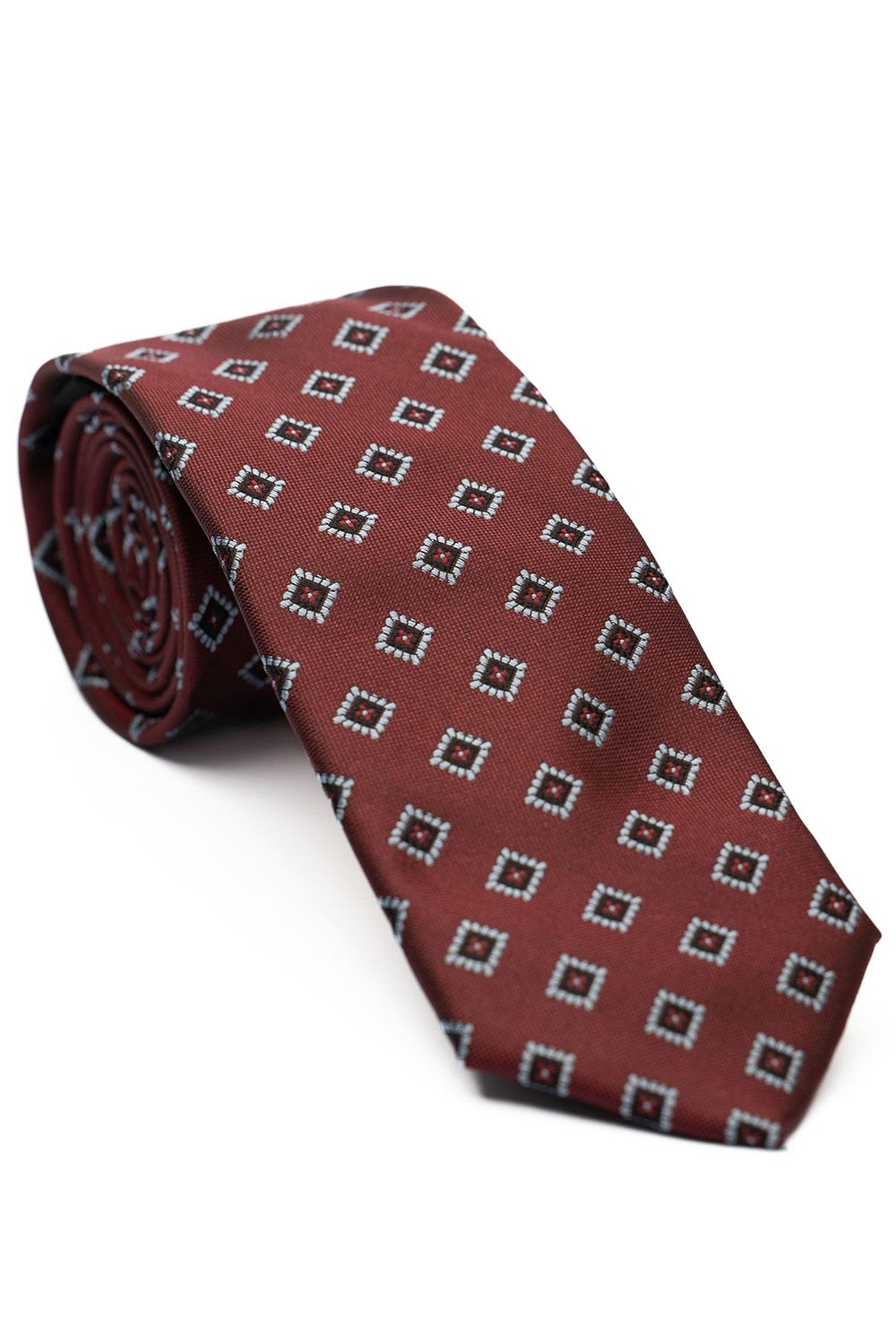 Cravata matase tesuta grena print geometric 1