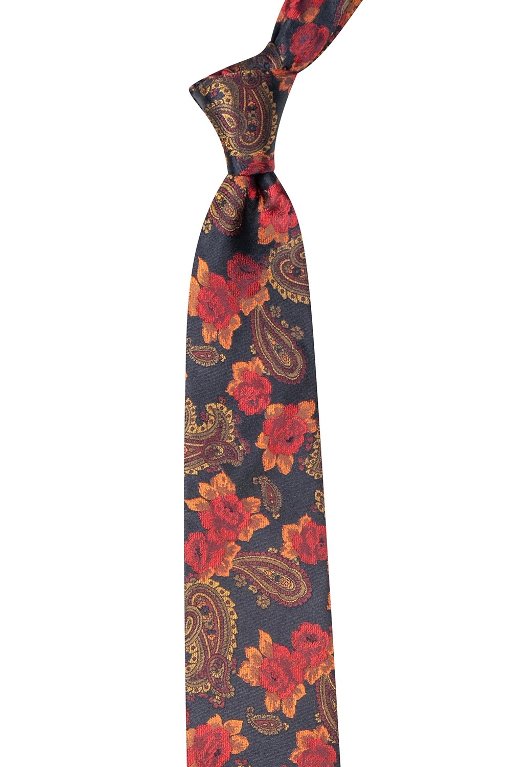 Cravata matase tesuta neagra print floral 1