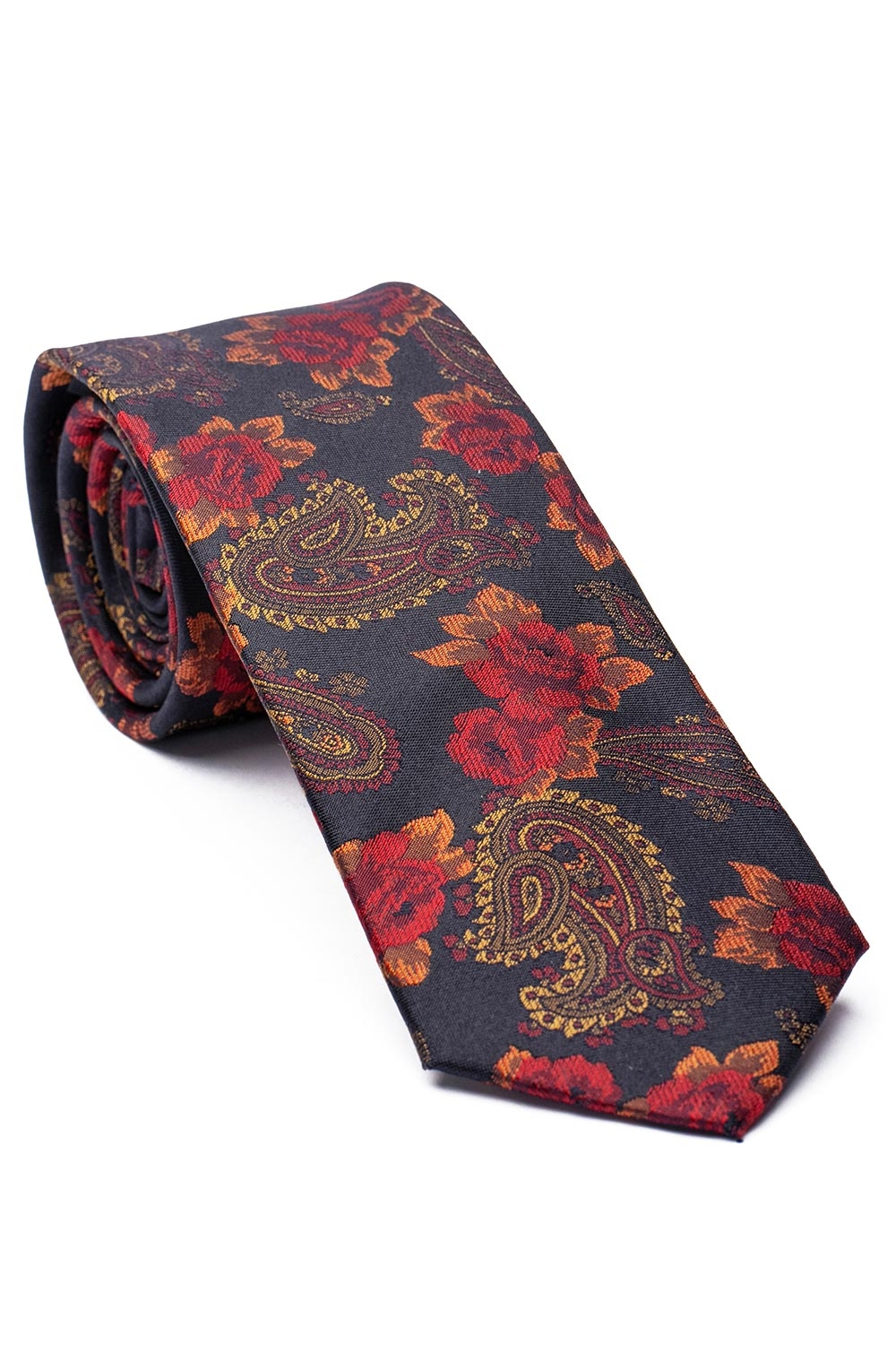 Cravata matase tesuta neagra print floral