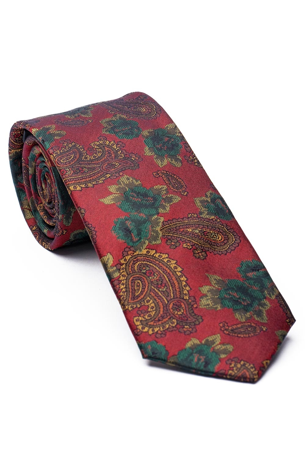 Cravata matase tesuta rosie print floral 1