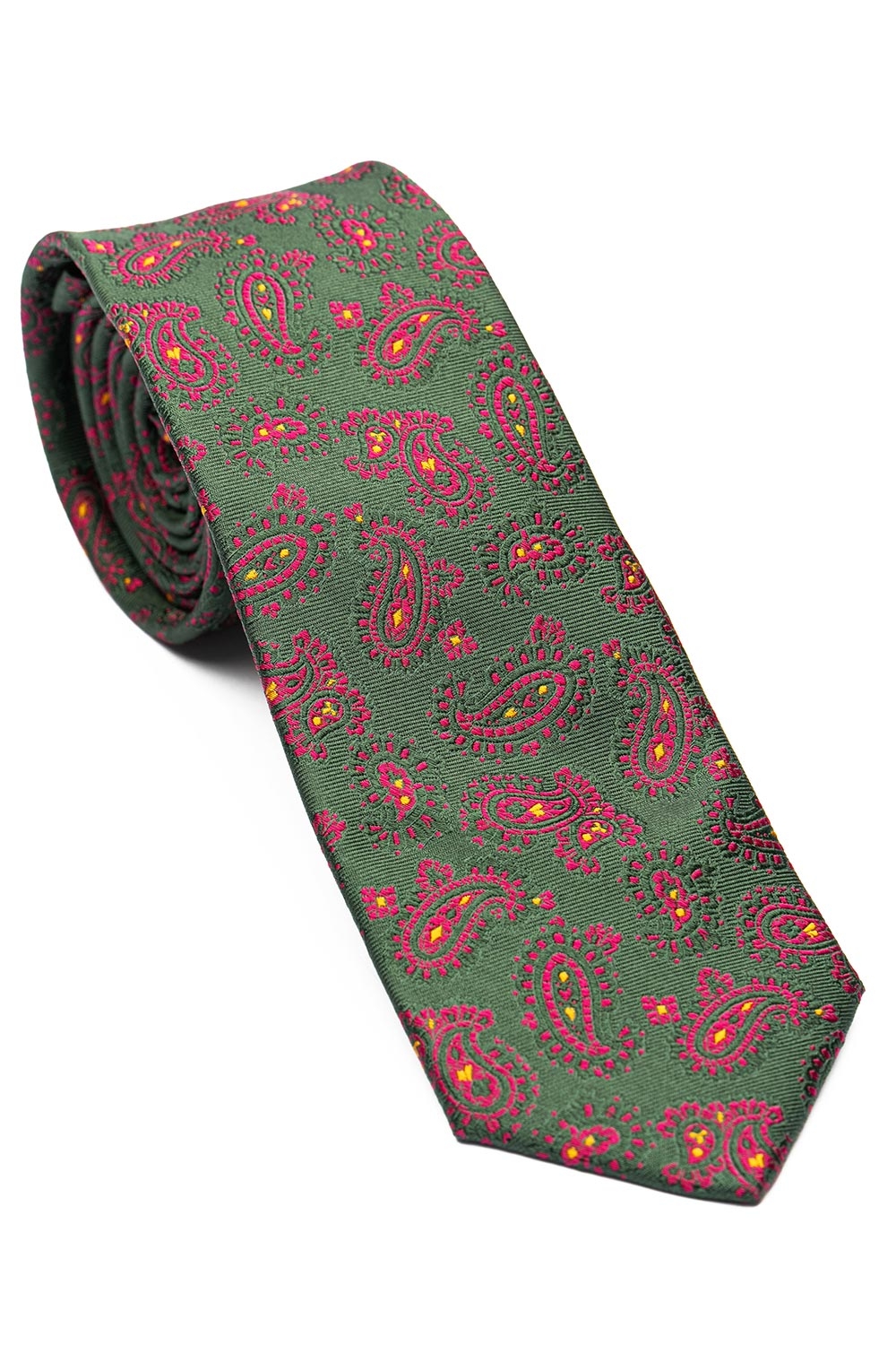 Cravata matase tesuta verde print floral