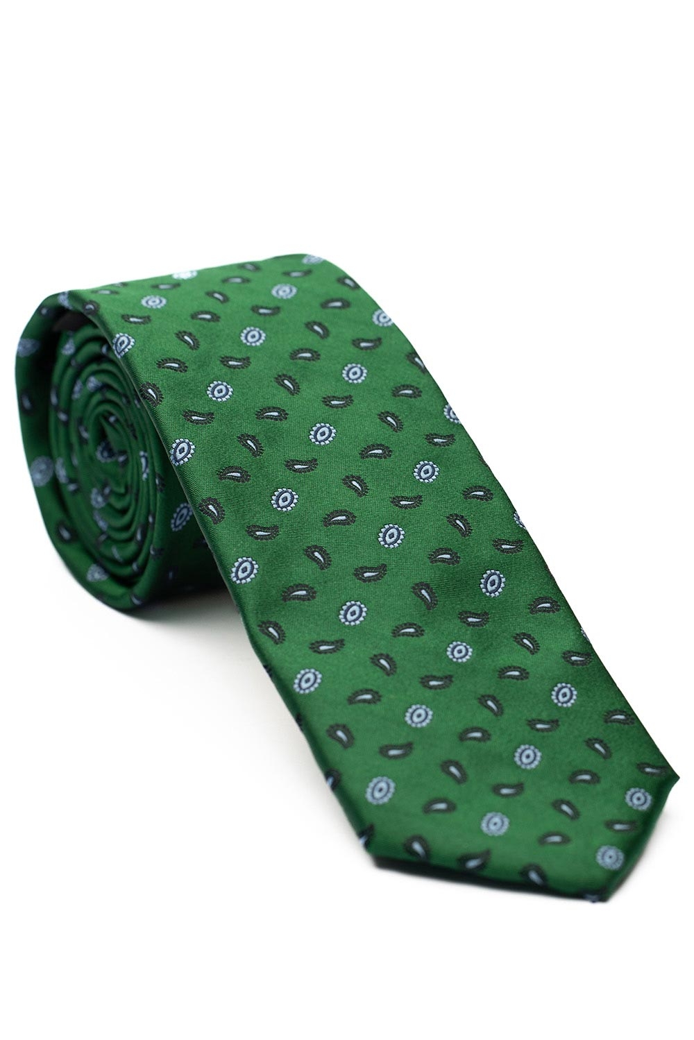 Cravata matase tesuta verde print floral