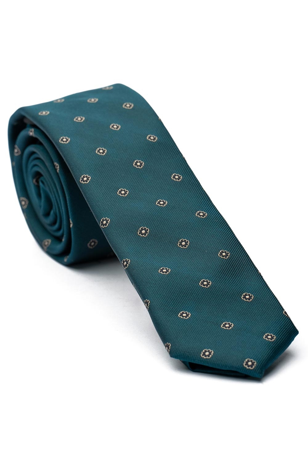 Cravata poliester tesut albastra print floral 1