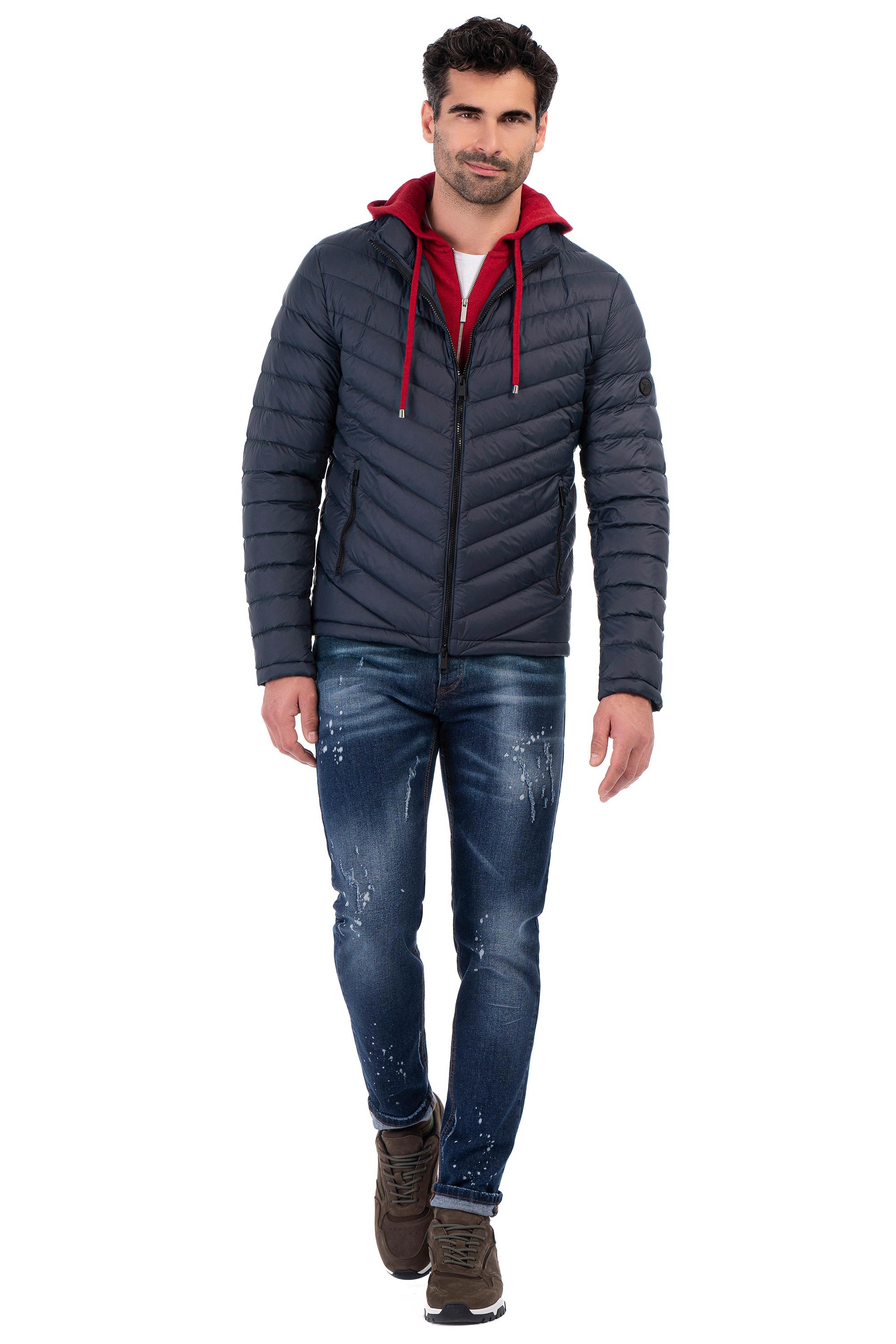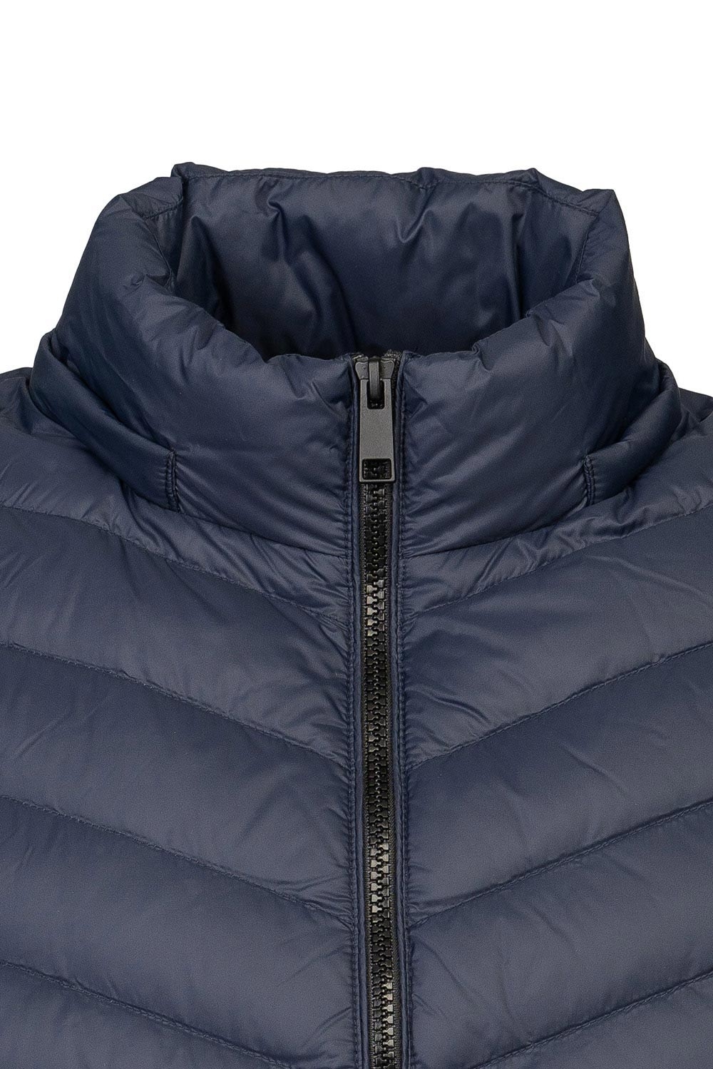 Geaca slim bleumarin uni cu puf si gluga detasabila
