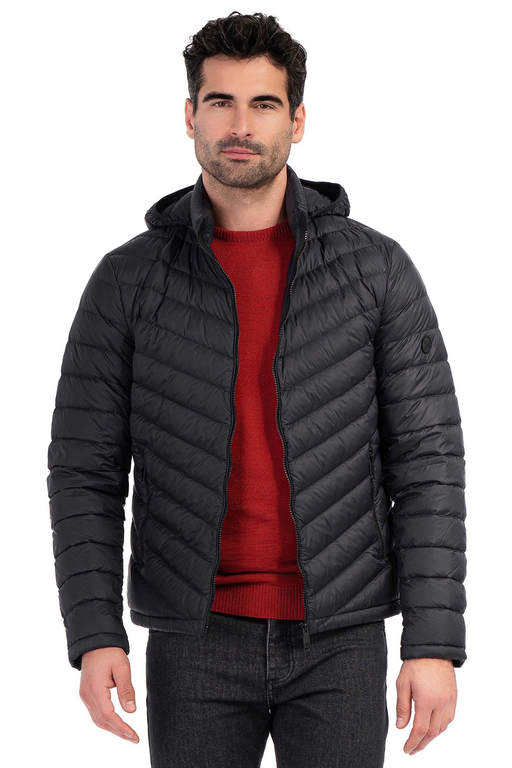 Geaca slim neagra uni cu puf si gluga detasabila 1