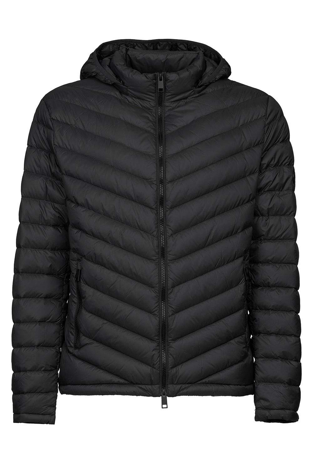 Geaca slim neagra uni cu puf si gluga detasabila 0