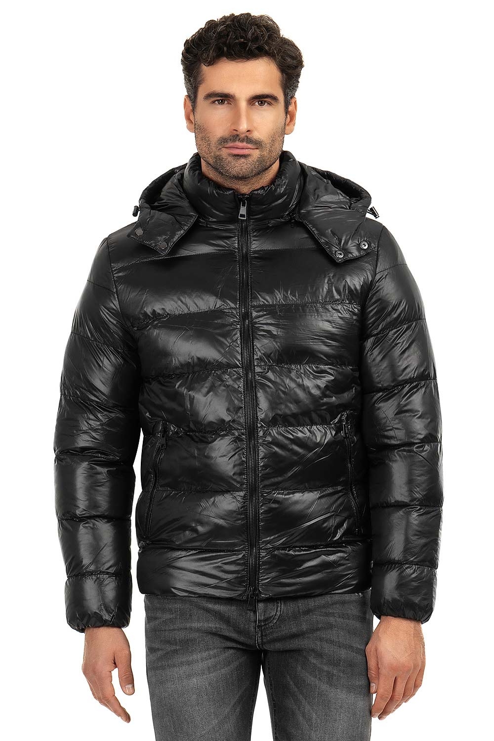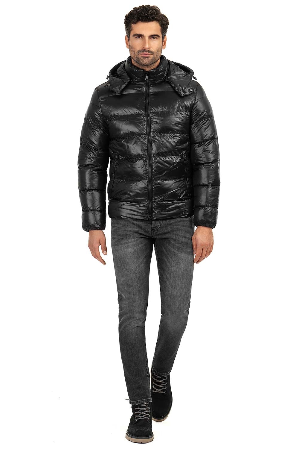 Jacheta slim neagra cu gluga detasabila 1