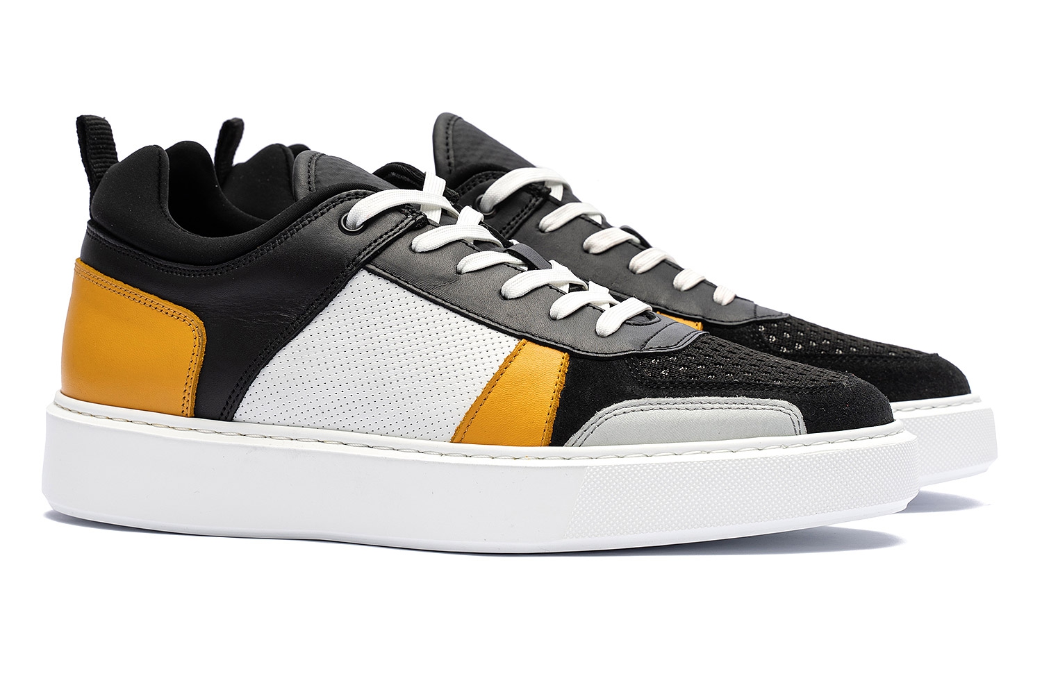 Sneakers multicolori piele mata, piele intoarsa si textil