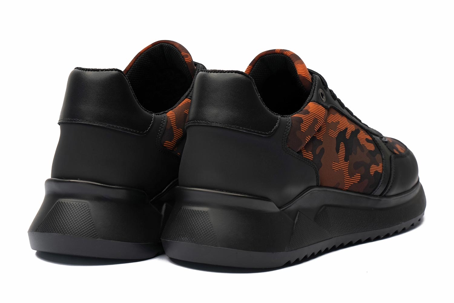 Sneakers negri caramizii piele naturala si neopren