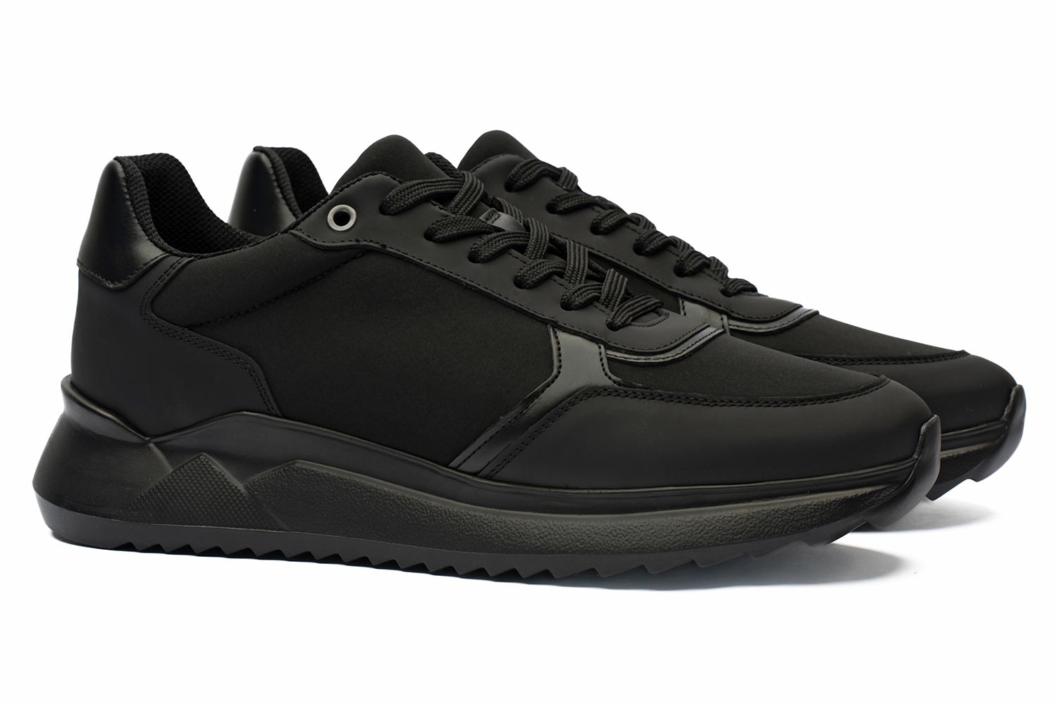 Sneakers negri piele naturala si textil 3