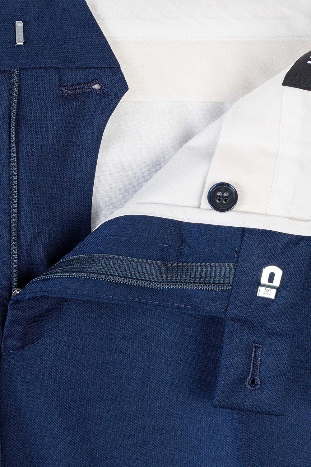 Pantaloni conti slim albastri uni