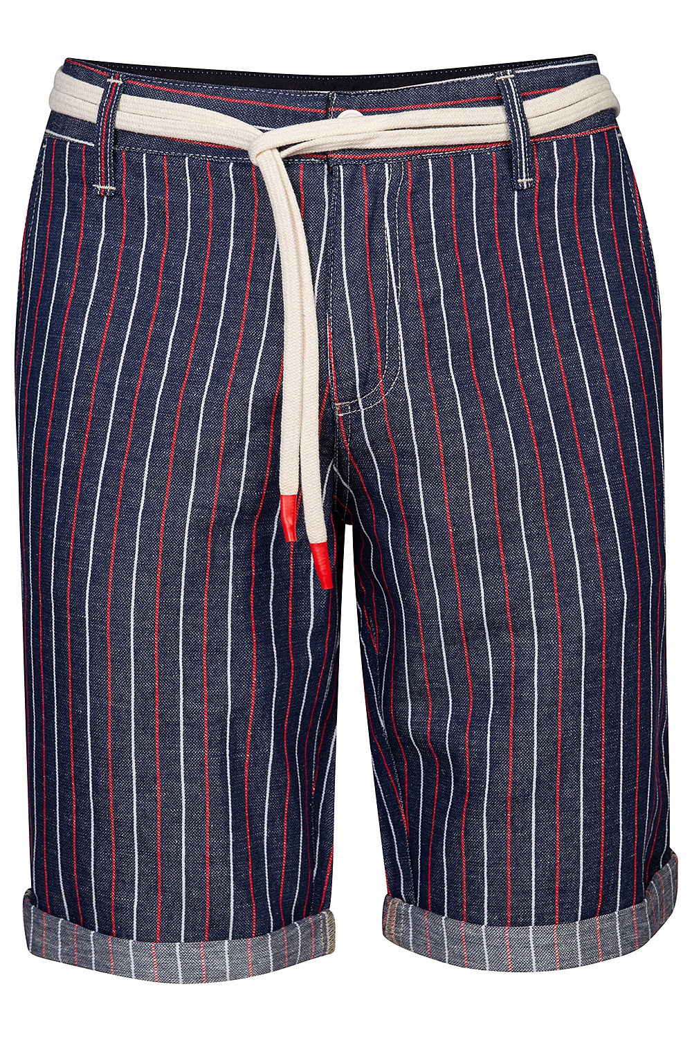 Pantaloni scurti slim din in bleumarin cu dungi 0