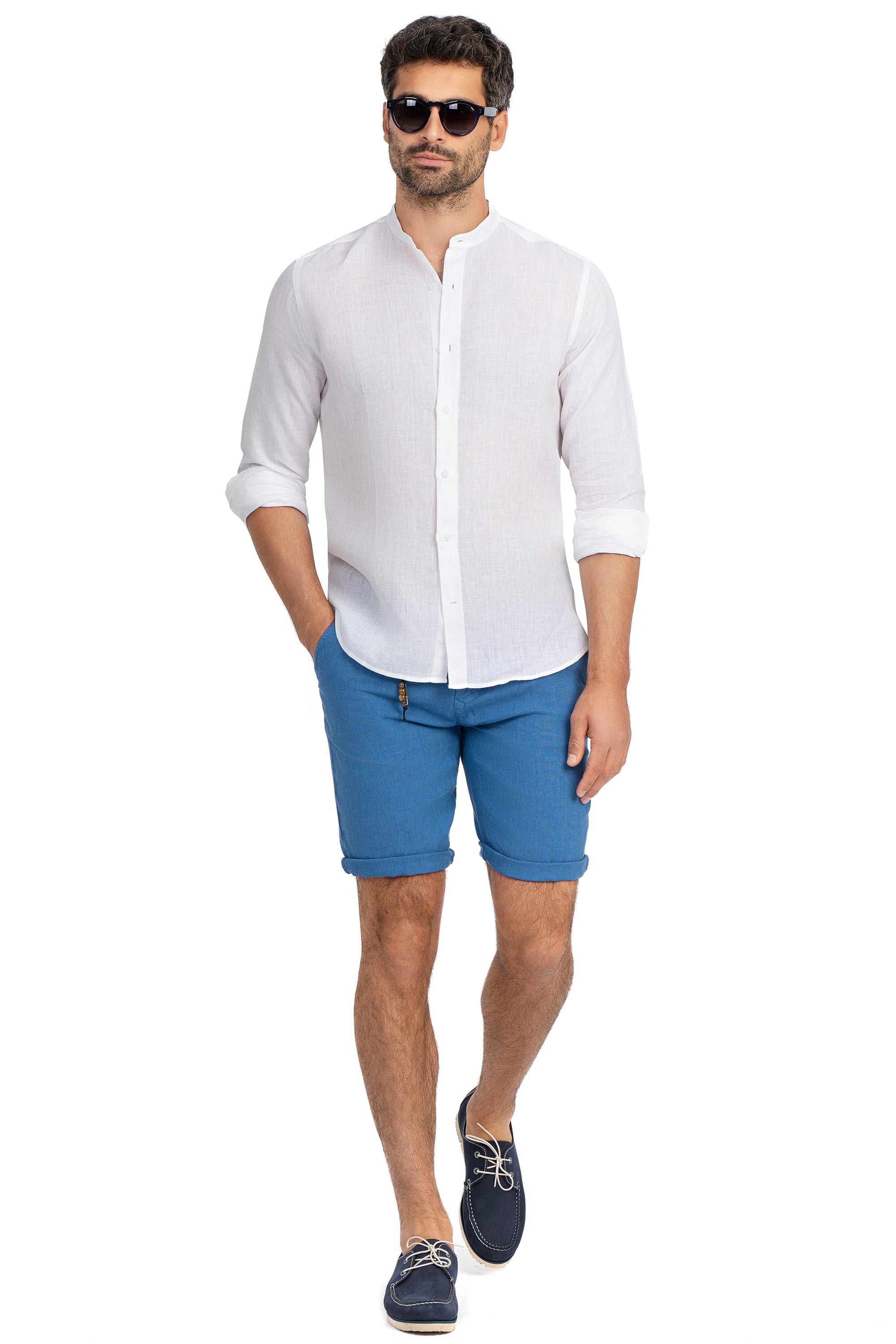 Pantaloni scurti slim din in albastri uni 1