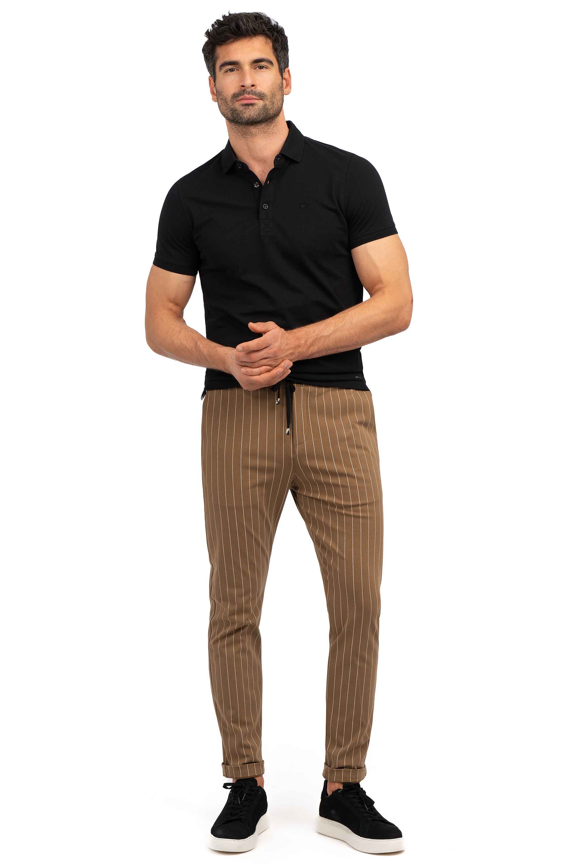 Pantaloni slim maro cu dungi limited collection