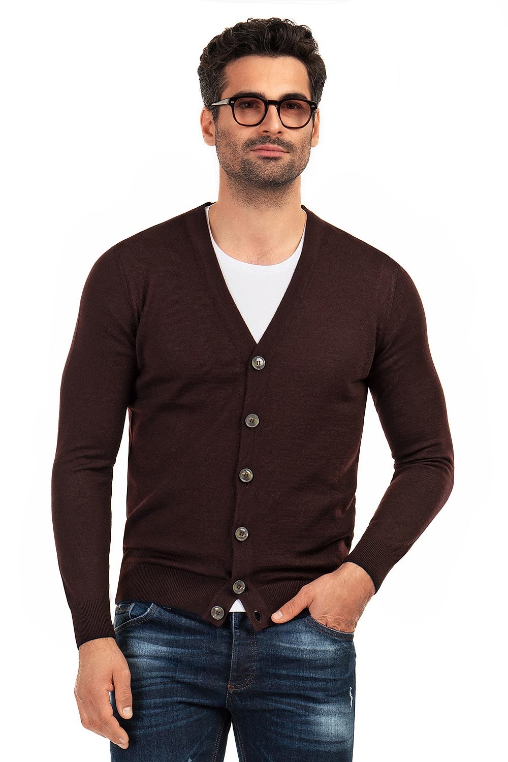 Cardigan slim grena guler in v 3
