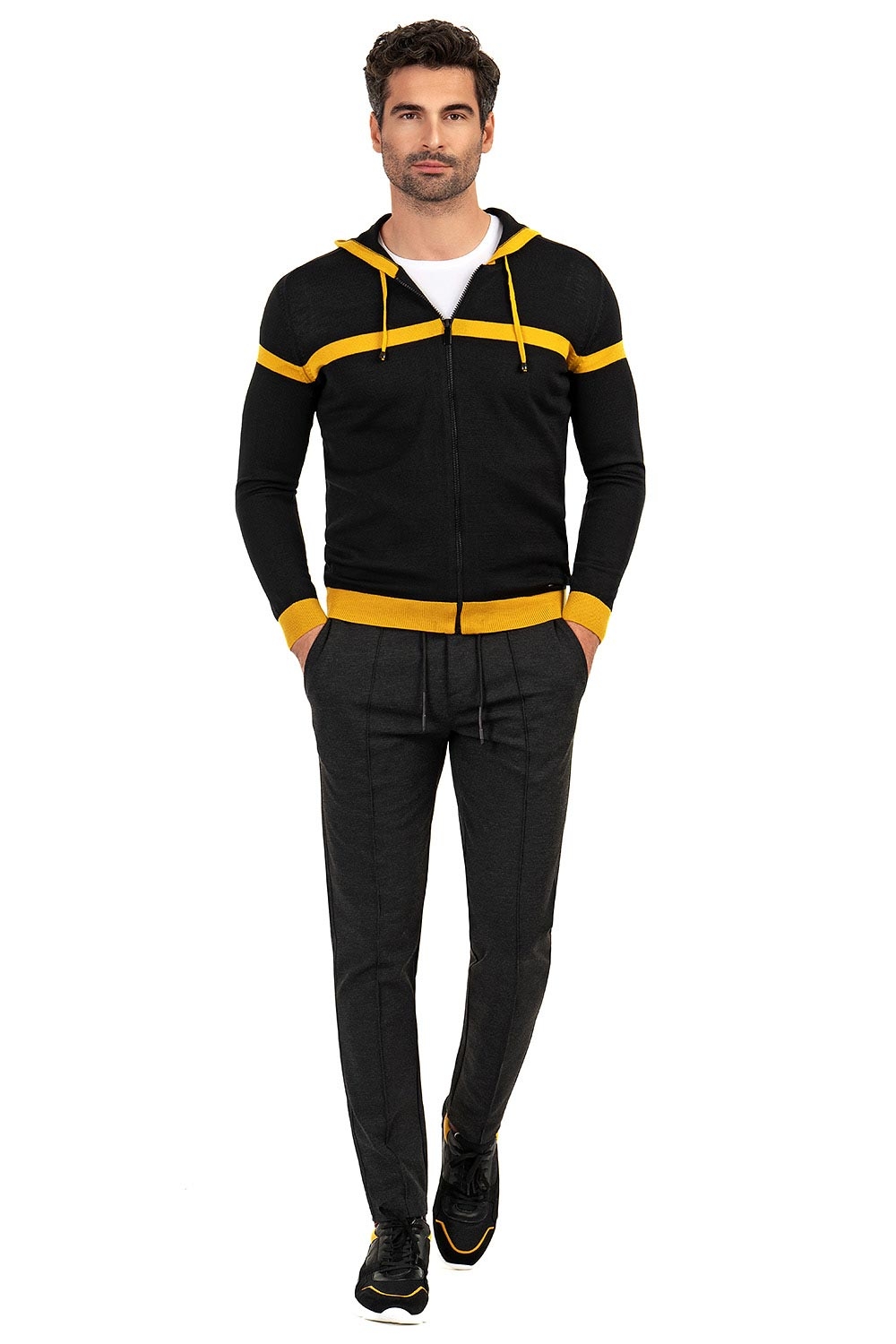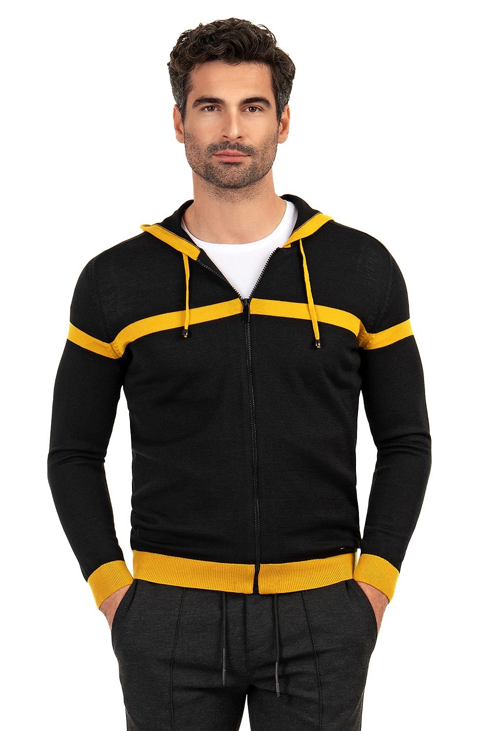 Hanorac slim negru cu gluga 1