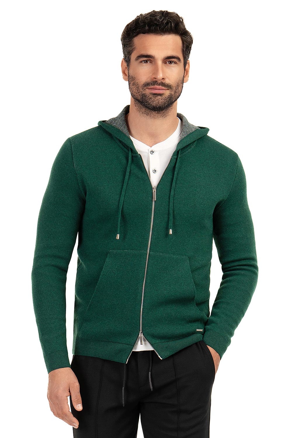 Hanorac slim verde cu gluga 1