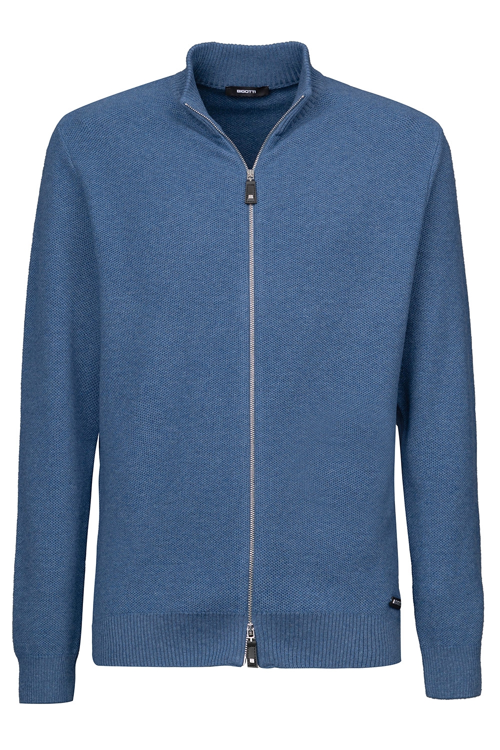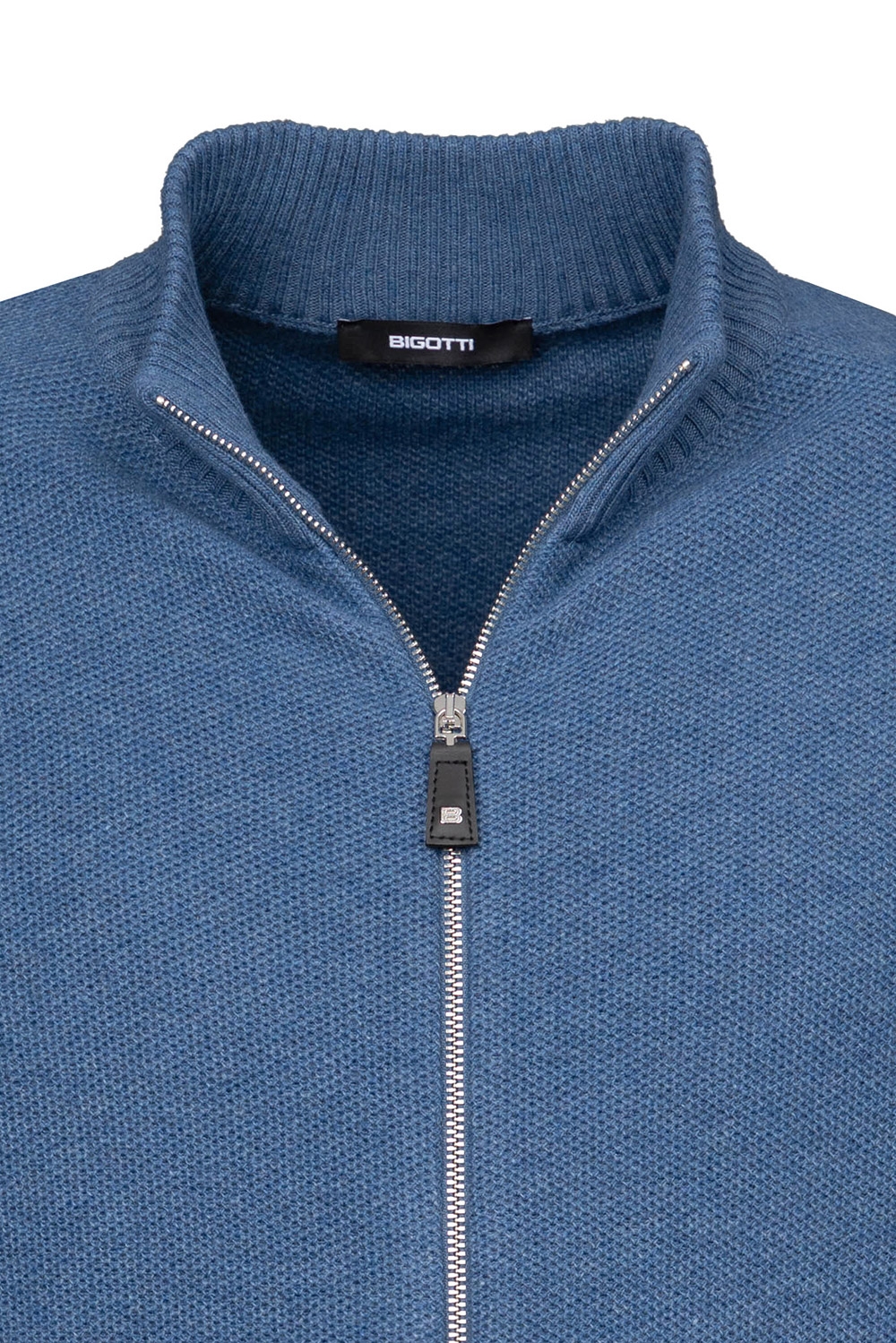 Pulover regular albastru cu fermoar, din amestec cu casmir