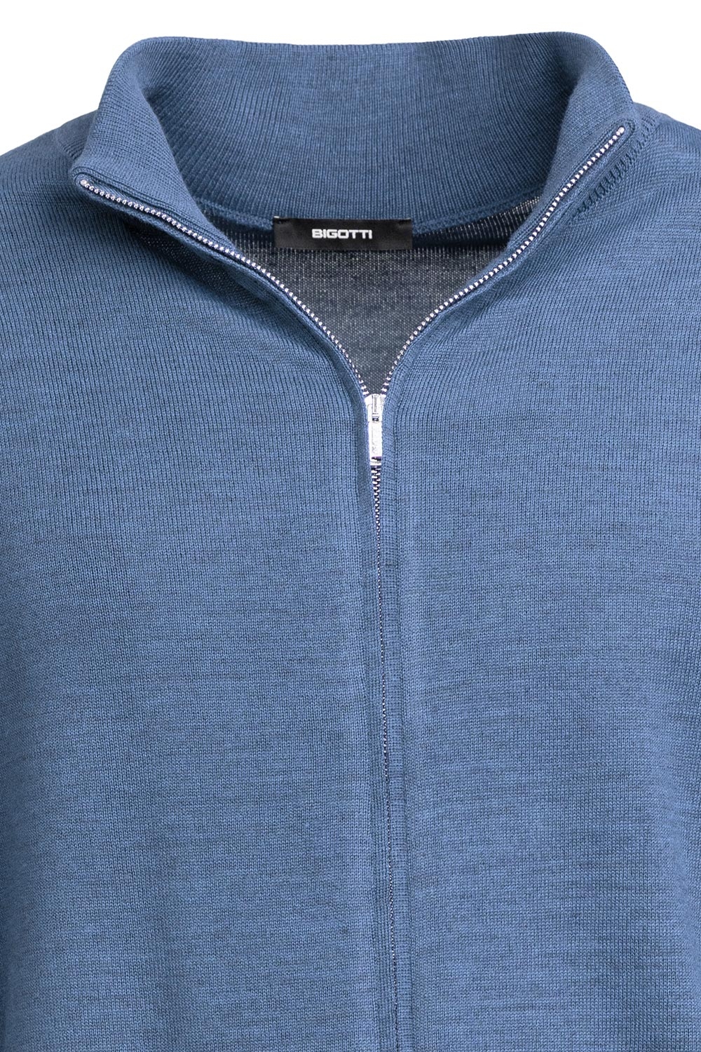 Pulover regular albastru cu fermoar din lana si acril