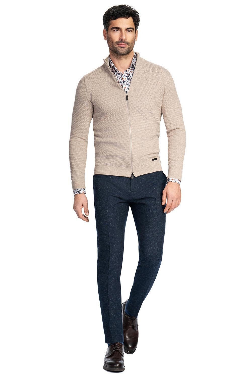 Pulover regular bej cu fermoar 1