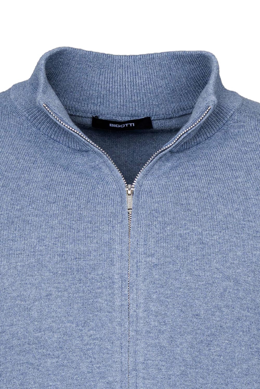 Pulover regular bleu cu fermoar din lana si bumbac 1